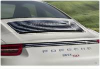 911 รุ่นเฉลิมฉลองนี้สามารถเลือกสีภายนอกที่เป็นสีพิเศษได้สองสีนั่นคือสีเท้าเข้ม graphite grey และสีเทา geyser grey metallic หรือจะเลือกสีดำ black monochrome ได้ด้วยเช่นกัน รถรุ่นนี้ทุกคันจะได้รับการประดับด้วยโลโก้ “911 50” แบบ 3D 2 สีทางด้านฝากระโปรงหลัง และยังมีการติดตั้งลงบนที่พักศรีษะโดยเป็นการสลักแบบ 3 สี บนแผงหน้าปัดจะมีโลโก้นี้ในรูปแบบ 2 สี รวมไปถึงกาบบันไดประตูแบบอลูมิเนียมเพิ่มความโดดเด่นเป็นเอกลักษณ์ แผงที่วางแก้วจะได้พบกับตัวเลขของรถแต่ละคันที่บ่งบอกให้เห็นถึงรุ่นที่มีจำนวนจำกัด อีกหนึ่งความโดดเด่นในรูปลักษณ์ภายนอกของรถรุ่นนี้คือโครงกระจกแบบพิเศษที่ได้รับการพ่นเงา มาพร้อมกับกระจกข้างที่ได้รับการออกแบบให้มีความสปอร์ตมากขึ้นเพื่อผสมผสานเข้ากับแผงประตูที่มีความโดดเด่นได้อย่างลงตัวและสมบูรณ์แบบที่สุด