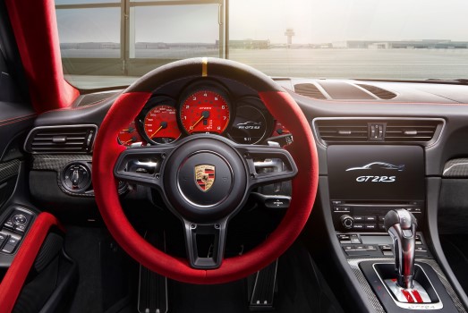 พื้นที่ภายในห้องโดยสารของปอร์เช่ 911 จีที 2 อาร์เอส (911 GT2 RS) ใหม่ ได้รับการตกแต่งอย่างสวยงามโดดเด่นด้วย วัสดุ Alcantara สีแดง หนังแท้สีดำคุณภาพชั้นเลิศ และชิ้นส่วนอุปกรณ์ที่ผลิตจากคาร์บอนติดตั้งเป็นมาตรฐาน พวงมาลัยสปอร์ตของ GT2 RS มาพร้อมแป้นเปลี่ยนเกียร์ shift paddles เพื่อความรวดเร็วฉับไวสูงสุด ผู้ขับขี่และผู้โดยสารสามารถสัมผัสกับประสบการณ์สปอร์ตจากตัวรถอย่างเต็มอารมณ์ความรู้สึก ผ่านเบาะนั่ง full bucket seats หุ้มด้วยคาร์บอน เช่นเดียวกับปอร์เช่ 911 ทุกคัน ระบบติดต่อสื่อสารและความบันเทิง Porsche Communication Management (PCM) ได้รับการติดตั้งรวบรวมไว้บริเวณคอนโซลกลาง ประกอบด้วย วิทยุ ระบบนำทางผ่านดาวเทียม และระบบติดต่อสื่อสาร  รวมไปถึง Connect Plus module* และ Porsche Track Precision app* ซึ่งถูกติดตั้งเป็นมาตรฐาน พร้อมเชื่อมต่อรายละเอียดข้อมูลและแสดงผลการทำงานของระบบต่างๆ ของตัวรถไปยังโทรศัพท์มือถือ