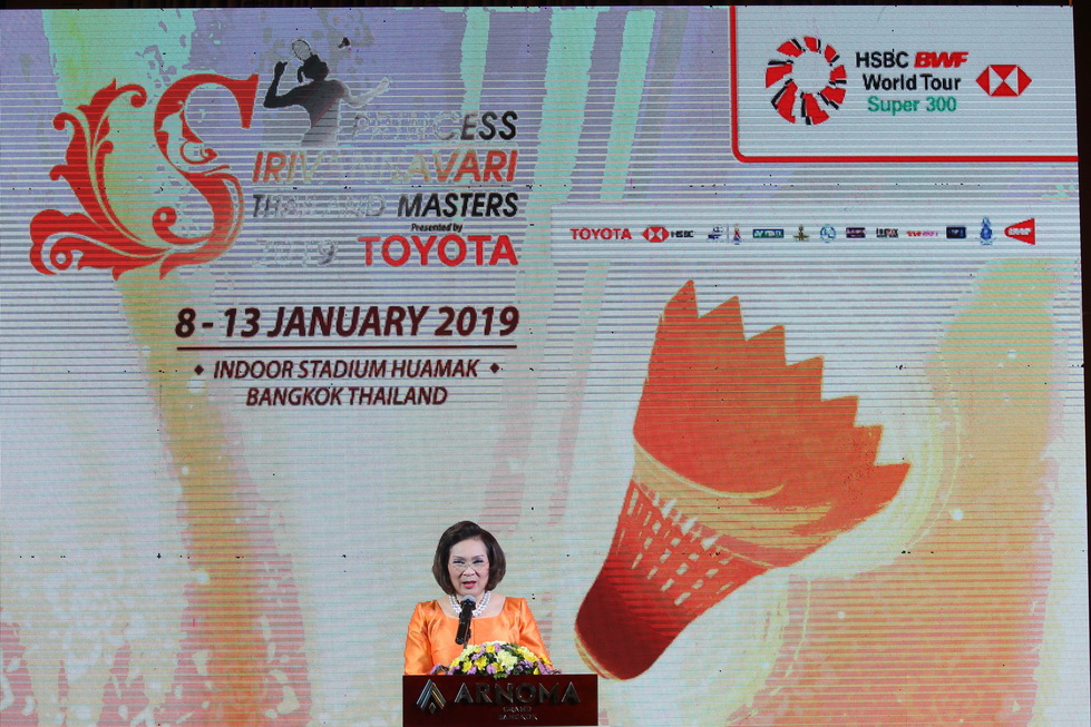 คุณหญิงปัทมา ลีสวัสดิ์ตระกูล ในฐานะประธานคณะกรรมการจัดการแข่งขันฯ กล่าวว่า “การแข่งขันกีฬาแบดมินตันระดับนานาชาติรายการใหญ่เป็นปฐมฤกษ์รายการแรกของโลกของปี 2019 HSBC BWF World Tour Super 300 “Princess Sirivannavari Thailand Masters 2019 Presented by Toyota” ชิงถ้วยประทานพระเจ้าหลานเธอ พระองค์เจ้าสิริวัณณวรีนารีรัตน์ พร้อมเงินรางวัลรวม 150,000 เหรียญสหรัฐ หรือประมาณ 5 ล้านบาท ระหว่างวันที่ 8 – 13 มกราคม 2562 ณ อินดอร์สเตเดี้ยม หัวหมาก ด้วยสำนึกในพระกรุณาธิคุณของพระเจ้าหลานเธอ พระองค์เจ้าสิริวัณณวรีนารีรัตน์ ที่ทรงสนับสนุนการดำเนินการของสมาคมกีฬาแบดมินตันฯ อย่างต่อเนื่อง ได้ประทานถ้วยรางวัลเพื่อมอบแก่ผู้ชนะเลิศการแข่งขัน 5 ประเภท นับเป็นสิริมงคลและเป็นเกียรติสูงสุดแก่ผู้ได้ครองถ้วยประทาน”