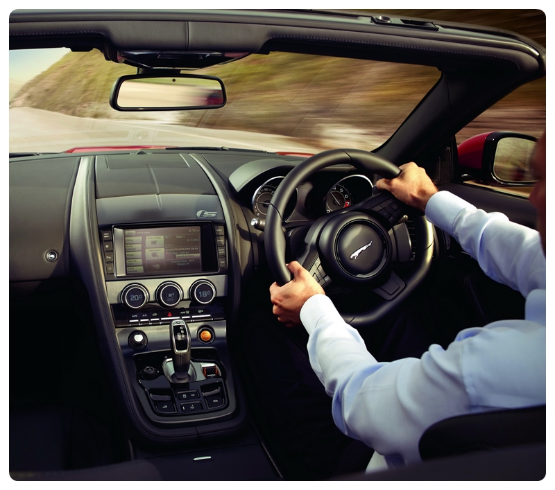 การตอบสนองที่แน่นอนฉับไว ห้องโดยสารของ จากัวร์ F-Type ได้ รับการออกแบบให้หรูหราในทุกมุมมอง สร้างความรู้สึกเสมือนห้องควบคุมอากาศยานที่ภูมิฐานด้วยอุปกรณ์ล้ำสมัยซึ่ง บรรจงจัดวางตำแหน่งไว้อย่างพิถีพิถัน ผสานการควบคุมทั้งระบบหน้าจอทัชสกรีนและระบบอะนาล็อกเพื่อมอบประสบการณ์การ ขับขี่ที่ควบคุมได้ดั่งใจเพียงปลายนิ้วสัมผัส โดยเฉพาะส่วนที่นั่งคนขับซึ่งได้รับการออกแบบให้เอื้อต่อการควบคุมอย่างเต็ม ประสิทธิภาพ โดยลดระดับความสูงของเบาะนั่งให้มีตำแหน่งใกล้จุดศูนย์ถ่วงของตัวรถและมี ทัศนวิสัยที่ครอบคลุมมากกว่า กล่าวได้ว่าทุกองค์ประกอบของ จากัวร์ F-Type ถูกสร้างสรรค์ให้ผสานประสิทธิภาพร่วมกันเป็นหนึ่งเดียว เพื่อการขับขี่ที่จะปลุกเร้าทุกประสาทสัมผัสของคุณ