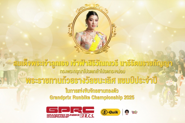 สมเด็จพระเจ้าลูกเธอ เจ้าฟ้าสิริวัณณวรี นารีรัตนราชกัญญา ทรงพระกรุณาโปรดเกล้าฯ พระราชทานถ้วยรางวัลชนะเลิศรายการ “Grandprix Runbike Championship Partnership with R.C.S.” ..
