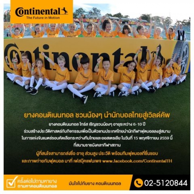 ยางคอนติเนนทอล ชวนน้องๆ นำนักบอลไทยสู่เวิลด์คัพ ..