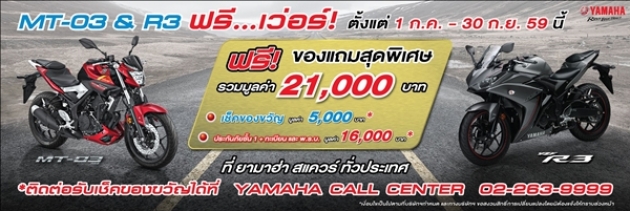 MT-03 & R3 ฟรี...เว่อร์! รับของขวัญจากยามาฮ่ามูลค่า 21,000 บาท ฟรี