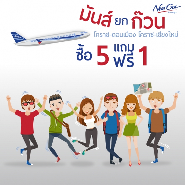 นิวเจนแอร์เวย์สเปิดจำหน่ายตั๋วออนไลน์รองรับผู้โดยสารที่เพิ่มต่อเนื่อง พร้อมจัดโปรโมชั่น ซื้อ 5 ฟรี 1 เที่ยวสนุกกันแบบ “มันส์ยกก๊วน” ..