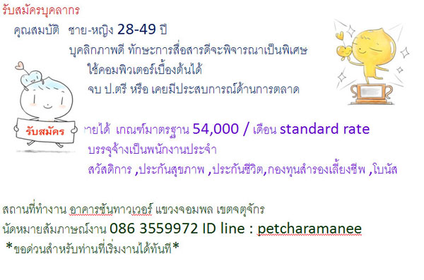 Re: *รับสมัคร* พนักงาน Full time และ Part times ทักไลน์ ID line: petcharamanee