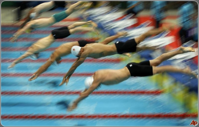 กีฬาว่ายน้ำ (Swimming) ถือเป็นศิลปะอย่างหนึ่ง เพราะมนุษย์สามารถว่ายน้ำได้ตั้งแต่สมัยดึกดำบรรพ์ โดยเฉพาะอย่างยิ่งมนุษย์ที่ตั้งภูมิลำเนาอยู่ตามชายทะเล แม่น้ำ ลำคลอง และที่ราบลุ่มต่างๆ เช่น พวกเอสซีเรีย อียิปต์ กรีก และโรมัน มีการฝึกหัดว่ายน้ำกันมาตั้งแต่ก่อนคริสตกาล เพราะมีผู้พบภาพวาดเกี่ยวกับการว่ายน้ำในถ้ำบนภูเขาแถบทะเลทรายลิบยาน การว่ายน้ำในสมัยนั้นเพียงเพื่อให้สามารถว่ายน้ำข้ามไปยังฝั่งตรงข้ามได้ หรือเมื่อเกิดอุทกภัยน้ำท่วมป่าและที่อยู่อาศัยก็สามารถพาตัวไปในที่น้ำท่วมไม่ถึงได้อย่างปลอดภัย การว่ายน้ำได้มีวิวัฒนาการมาตั้งแต่สมัยโบราณจนถึงปัจจุบัน แต่มีหลักฐานบันทึกไว้ไม่นานนัก Ralph Thomas ให้ชื่อแบบว่ายน้ำที่มนุษย์ใช้ว่ายกันมาตั้งแต่เดิมว่า ฮิวแมน สโตร์ก (Human stroke) นอกจากนี้พวกชนชาติสลาฟและพวกสแกนดิเนเวียรู้จักการว่ายน้ำอีกแบบหนึ่ง โดยใช้เท้าเคลื่อนไหวในน้ำคล้ายกบว่ายน้ำ หรือที่เรียกว่าฟล็อกคิก (Flogkick) แต่วิธีการเคลื่อนไหวของท่าแบบนี้จะทำให้ว่ายน้ำได้ไม่เร็วนัก การแข่งขันว่ายน้ำครั้งแรกได้จัดขึ้น วูลวิช บาร์ท (Woolwich Baths) ใกล้กับกรุงลอนดอน ประเทศอังกฤษ เมื่อปี พ.ศ. 2416 การแข่งขันครั้งนั้นมีการแข่งขันเพียงแบบเดียวคือ แบบฟรีสไตล์ (Free style) โดยผู้ว่ายน้ำแต่ละคนจะว่ายแบบใดก็ได้ ในการแข่งขันครั้งนี้ J. Arhur Trudgen เป็นผู้ได้รับชัยชนะ โดยเขาได้ว่ายแบบเดียวกับพวกอินเดียแดงในอเมริกาใต้ คือแบบยกแขนกลับเหนือน้ำ ซึ่งเป็นวิธีการว่ายน้ำของเขาได้กลายเป็นแบบที่ได้รับความนิยมมากจนได้ชื่อว่า ท่าว่ายน้ำแบบทรัดเจน (Trudgen stroke) ประชาชนชาวโลกได้ให้ความสนใจเกี่ยวกับการว่ายน้ำเพิ่มมากขึ้น เมื่อเรือเอก Mathew Webb ได้ว่ายน้ำข้ามช่องแคบอังกฤษจากเมืองโดเวอร์ คาเลียส เมื่อเดือนสิงหาคม พ.ศ. 2418 โดยใช้เวลาทั้งสิ้น 21 ชั่วโมง 45 นาที ด้วยการว่ายแบบกบ (Breast stroke) ข่าวความสำเร็จอันนี้ได้สร้างความพิศวงและตื่นเต้นไปทั่วโลก ต่อมาเด็กชาวอเมริกันชื่อ Gertude Ederle ได้ว่ายน้ำข้ามช่องแคบอังกฤษ เมื่อเดือนสิงหาคม พ.ศ. 2469 ทำเวลาได้ 14 ชั่วโมง 31 นาที โดยว่ายน้ำแบบท่าวัดวา (Crawa stroke) จะเห็นได้ว่าในชั่วระยะเวลา 50 ปี ![]() การว่ายน้ำได้วิวัฒนาการก้าวหน้าขึ้นเป็นอย่างมาก ถ้าหากได้พิจารณาถึงเวลาของคนทั้งสองที่ทำได้ แบบและวิธีว่ายน้ำได้รับการปรับปรุงเปลี่ยนแปลงเพื่อให้เกิดความเร็วขึ้นเสมอ ในบรรดานักว่ายน้ำทั่วไปโดยเฉพาะอย่างยิ่งชาวแลนเคเชียร์และออสเตรเลีย ได้ดัดแปลงวิธีว่ายน้ำแบบทรัดเจน ซึ่งก็ได้รับผลดีในเวลาต่อมา กล่าวคือ Barney Kieran ชาวออสเตรเลียและ T. S. Battersby ชาวอังกฤษ ได้ว่