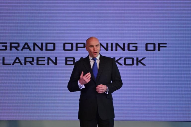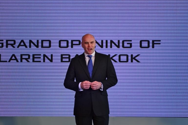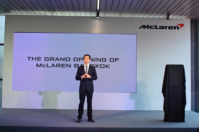 โชว์รูม แมคลาเรน กรุงเทพฯ ตั้งอยู่บนถนนมอเตอร์เวย์ กม.1 มีสิ่งอำนวยความสะดวกครบครันเพื่อการนำเสนอยานยนต์ซุปเปอร์คาร์และรถสปอร์ตสมรรถนะสูงจากแมคลาเรนหลากหลายรุ่นจากอังกฤษสู่ลูกค้าในประเทศไทย โดยเฉพาะรุ่น McLaren 650S ที่คว้ารางวัลระดับโลกมาแล้วมากมาย และจะนำมาจัดแสดงในงานเปิดตัวโชว์รูม นอกจากนี้ แมคลาเรนยังเปิดศูนย์บริการแมคลาเรน กรุงเทพฯ (McLaren Bangkok Service Centre) อย่างเป็นทางการ เพื่อสนับสนุนการดำเนินงานของโชว์รูมแห่งใหม่นี้อย่างเต็มประสิทธิภาพ มอบบริการซ่อมบำรุงและบริการหลังการขายครบวงจร เพื่อให้ลูกค้าแมคลาเรนในเมืองไทยได้สัมผัสกับประสบการณ์ขับขี่สไตล์แมคลาเรน ![]() ผู้ที่รับหน้าที่บริหารโชว์รูมแห่งใหม่นี้ คือ บริษัท นิช คาร์ จำกัด ผู้นำเข้ารถซุปเปอร์คาร์และสปอร์ตคาร์ระดับพรีเมียมในประเทศไทย ซึ่งเป็นที่ยอมรับในหมู่ผู้บริโภคระดับสูงของเมืองไทยในด้านคุณภาพและบริการชั้นเลิศ งานเปิดตัวยังได้รับเกียรติจากตัวแทนสำนักงานใหญ่แมคลาเรน ประจำภูมิภาคเอเชียแปซิฟิก มาร่วมในพิธีเปิด มร.เดวิด แมคอินไตย์ ผู้อำนวยการแมคลาเรน ประจำภูมิภาคเอเชียแปซิฟิก และ มร.จอร์จ บิกส์ หัวหน้าฝ่ายงานขายและปฏิบัติการ ประจำภูมิภาคเอเชียแปซิฟิก แมคลาเรน ร่วมด้วยตัวแทนจากผู้จัดจำหน่าย ได้แก่ เสรี รักษ์วิทย์ ประธานบริษัท และ วิทวัส ชินบารมี กรรมการผู้จัดการบริษัท นิช คาร์ จำกัด ![]() วิทวัส ชินบารมี กรรมการผู้จัดการบริษัท นิช คาร์ จำกัด กล่าวในสุนทรพจน์ว่า “เรารู้สึกภูมิใจอย่างยิ่งกับบทบาทใหม่ในฐานะผู้แทนจำหน่ายรถยนต์แมคลาเรนอย่างเป็นทางการรายแรกในกรุงเทพฯ ด้วยมาตรฐานการให้บริการระดับโลกและความมุ่งมั่นสู่ความเป็นเลิศ เราขอให้คำมั่นว่า เราจะมอบประสบการณ์การขับขี่ระดับหรูให้แก่ผู้บริโภคในเมืองไทยบนมาตรฐานเดียวกับที่ แมคลาเรน ออโตโมทีฟ นำเสนอแก่ผู้บริโภคระดับสูงทั่วโลก โดยการเปิดโชว์รูมแมคลาเรน กรุงเทพฯ ในวันนี้ถือเป็นอีกหนึ่งความพยายามในการตอบสนองความต้องการที่เพิ่มสูงขึ้นของนักขับรถซุปเปอร์คาร์ในเมืองไทย” ![]() เดวิด แมคอินไตย์ ผู้อำนวยการแมคลาเรน ประจำภูมิภาคเอเชียแปซิฟิก กล่าวเสริมว่า “ตลาดรถหรูในภูมิภาคเอเชียแปซิฟิกถือเป็นกุญแจสำคัญสู่ความสำเร็จของแบรนด์แมคลาเรน เรามุ่งมั่นสร้างความเข้มแข็งให้แก่เครือข่ายอย่างต่อเนื่อง ซึ่งเห็นได้จากการเปิดโชว์รูมแมคลาเรนในกรุงเทพฯ แห่งนี้ ปีนี้ถือว่ามีความสำคัญอย่างยิ่ง เนื่องจากเราได้เปิดตัวยานยนต์สปอร์ตซีรีส์ใหม่ ซึ่งเป็นที่เฝ้าจับตาของผู้บริโภคมาอย่างย