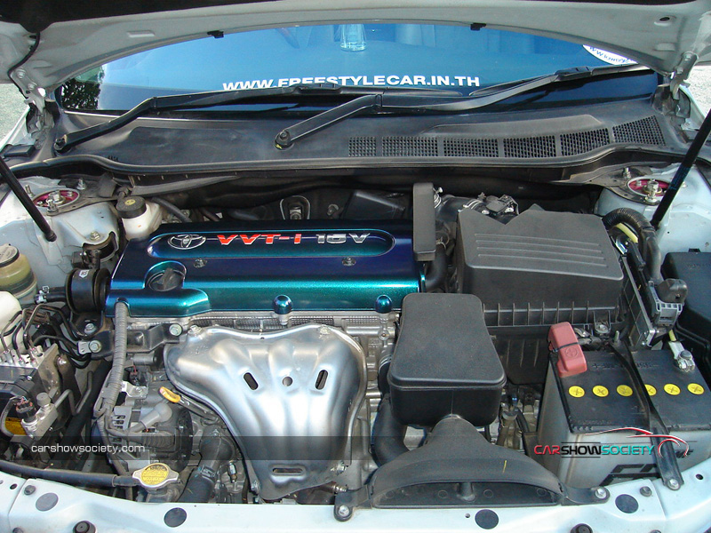 ทางด้านขุมพลังของแคมรี่นั้นเป็นเครื่องยนต์ 1AZ-FE  แบบ  4 สูบ ขนาด 2000 ซีซี. DOHC 16 วาล์ว  แบบ VVT-i ซึ่งเป็นระบบวาล์วแปรผันที่ขึ้นชื่อของโตโยต้า    สามารถให้กำลังแรงม้าสูงสุด 147  แรงม้าที่ 6,000 รอบต่อนาที  กับแรงบิดสูงสุด  190 นิวตัน-เมตร ที่ 4000 รอบต่อนาที  พร้อมระบบเกียร์แบบ  5 สปีด   ซึ่งในส่วนของเครื่องยนต์ไม่ได้ทำการปรับแต่งแต่อย่างใดแค่แต่แต้มฝาครอบเครื่องให้มีสีสันเป็นสีฟ้าลูไซส์เพื่อให้ดูสวยงามยิ่งขึ้น