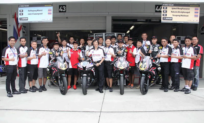 "ทีมแข่งเอ.พี.ฮอนด้า เรซซิ่ง ไทยแลนด์" ผ่านไปแล้วอีก 1 สนามสำหรับการแข่งขัน FIM Asia Road Racing Championship 2015 เส้นทางล่าฝันสู่ความเป็นเจ้าแห่งความเร็วของเอเชียของทีมแข่ง A. P. Honda Racing Thailand ฤดูกาลแข่งขัน 2015 สนามที่ 3 ณ สนามซูซูกะ เซอร์กิต ประเทศญี่ปุ่น เมื่อวันที่ 1-5 ก.ค. ที่ผ่านมา ซึ่งความสำเร็จของทีม เอ.พี. ฮอนด้า ประเทศไทยเกิดขึ้นอีกครั้งในศึก FIM Asia Road Racing Championship ในสนามที่ 3 ที่ประเทศญี่ปุ่น เมื่อสองเด็กไทย ชิพ-นครินทร์ อธิรัฐภูวภัทร์ และสแตม-อภิวัฒน์ วงศ์ธนานนท์ สองนักบิดชาวไทยกอดคอขึ้นโพเดี้ยมในรุ่น เอเชีย โปรดักชั่น 250 ซีซี ![]() ซึ่งการแข่งขันในรุ่นนี้ดวลกัน 8 รอบสนาม มีความเข้มข้นในเรซที่ 2 "ชิพ" นครินทร์ อธิรัฐภูวภัทร์, "สแตม" อภิวัฒน์ วงศ์ธนานนท์ และ "เอ้" วรพงศ์ มาลาหวล เป็น 3 นักบิดที่ลงแข่งขันให้กับ เอ.พี.ฮอนด้า เรซซิ่ง ไทยแลนด์ ควบรถแข่ง Honda CBR300R ที่ผลิตในประเทศไทยลงแข่งขันปะทะฝีมือนักแข่งเจ้าถิ่นอย่างดุเดือด แต่นักแข่งไทยก็โชว์ศักยภาพรถแข่งที่ผลิตจากโรงงานในประเทศไทยสู้กับคู่แข่งได้ตลอดเกม ซึ่งทั้ง ชิพ และ สแตม ที่ออกตัวจากกริดสตาร์ทลำดับ 2 และ 3 ออกตัวได้อย่างดุดันโดยไล่จี้ ทาเคฮิโระ ยามาโมโตะ ที่ออกตัวเป็นที่ 1 ไปแบบเกาะติดทุกโค้ง แม้จะเป็นรองนักบิดเจ้าถิ่นในเรื่องความคุ้นเคยสนาม สุดท้ายเป็น ยามาโมโต เข้าเส้นชัยรับธงตาหมากรุกได้เป็นคันแรก เวลา 20 นาที 48.581 วินาที ![]() ขณะที่ "ชิพ" และ "สแตม" รักษาตำแหน่งได้ดีจนวิ่งเข้าตามมาเป็นอันดับ 2 และ 3 ส่วน "เอ้" วรพงศ์ เข้าลำดับ 33 ทำให้นักบิดไทยขึ้นโพเดียมในรุ่นนี้พร้อมกันถึงสองคน และในส่วนของคะแนนรวม 3 สนามที่ผ่านมาในฤดูกาลนี้ "สแตม" อภิวัฒน์ วงศ์ธนานนท์ ยังเป็นผู้นำมีแต้มเพิ่มเป็น 106 แต้ม ตามด้วย ทาเคฮิโระ ยามาโมโตะ จาก คาวาซากิ มี 104 แต้ม และ นครินทร์ อธิรัฐภูวภัทร์ มี 69 แต้ม ยึดอันดับ 3 รวมถึง วรพงศ์ มาลาหวล ยังเกาะติดอยู่อันดับ 4 มี 58 แต้ม ![]() ทั้งนี้ นายอารักษ์ พรประภา กรรมการบริหาร บริษัท เอ.พี.ฮอนด้า จำกัด กล่าวหลังจากจบการแข่งขันว่าจากผลงานของนักบิดไทยที่ทำผลงานได้อย่างต่อเนื่องในการแข่งขันรายการนี้ ทำให้ความหวังของทีมที่จะประสบความสำเร็จมีมากขึ้นเรื่อยๆ และล่าสุดการดึงตัว มาโกโตะ ทามาดะ อดีตยอดนักแข่งระดับโลก เข้ามาเป็นผู้ฝึกสอนพิเศษให้นักบิดไทย น่าจะทำให้ผลงานดียิ่งขึ้นไปอีก และเป้าหมายสูงสุดที่ต้องไปให้ได้คือตำแหน่งเจ้าความเร็วของเอเชีย รวมทั้งการก้าวเข้าสู่สนามระดับโลกต่อไปด้วย ![]() "การแข่งขันเอเชียโร้ดเรซซิ่่งเปรียบเสมือนเอเชี่ยนเกมส์ของวงการมอเตอร์สปอร์ต เป็นเวทีสำคัญที่จะแสดงศักยภา