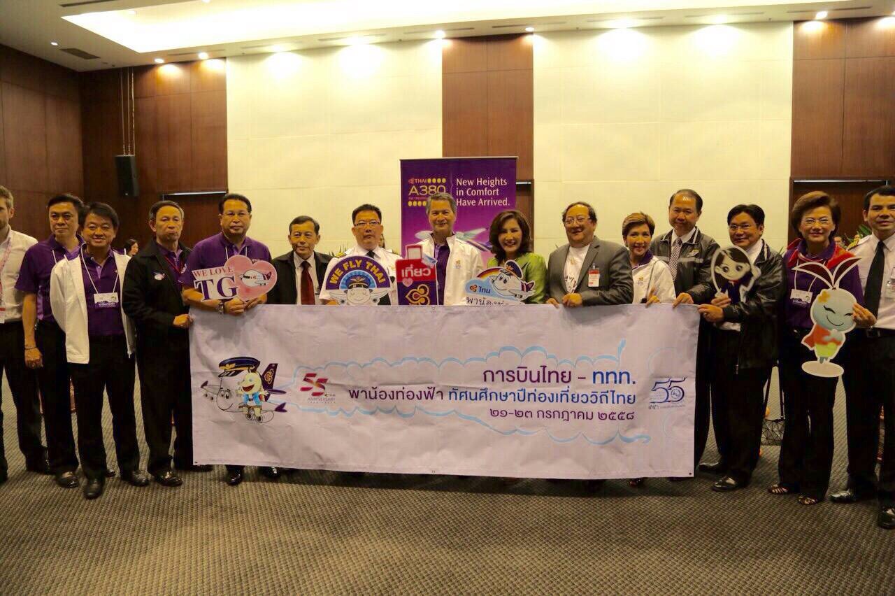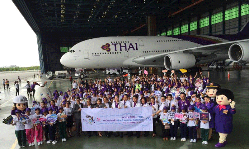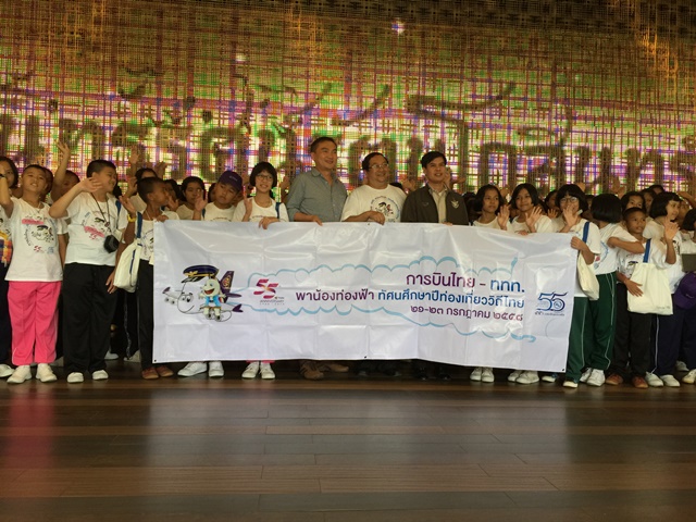 การบินไทย สุวรรณภูมิ.. เมื่อเร็วๆ นี้ นายจรัมพร โชติกเสถียร กรรมการผู้อำนวยการใหญ่ บริษัท การบินไทย จำกัด (มหาชน) และ นายศุกรีย์ สิทธิวนิช รองผู้ว่าการด้านสื่อสารการตลาด การท่องเที่ยวแห่งประเทศไทย ร่วมเป็นประธานจัดกิจกรรม “การบินไทย - ททท. พาน้องท่องฟ้า ทัศนศึกษาปีท่องเที่ยววิถีไทย” เพื่อสร้างเสริมประสบการณ์การเรียนรู้นอกห้องเรียนและสร้างแรงบันดาลใจให้เยาวชนในอนาคต นายจรัมพร โชติกเสถียร กรรมการผู้อำนวยการใหญ่ บริษัท การบินไทย จำกัด (มหาชน) เปิดเผยว่า “เนื่องในโอกาสที่การบินไทยและการท่องเที่ยวแห่งประเทศไทยได้ดำเนินกิจการมาแ นี้ จึงได้ร่วมกันจัดกิจกรรม “การบินไทย - ททท. พาน้องท่องฟ้า ทัศนศึกษาปีท่องเที่ยววิถีไทย” ซึ่งเป็นกิจกรรมหนึ่งที่สอดคล้องกับนโยบายด้านความรับผิดชอบต่อสังคม (Corporate Social Responsibility : CSR) ของบริษัทฯ ที่จะดำเนินธุรกิจควบคู่ไปกับการจัดกิจกรรมที่แสดงความรับผิดชอบต่อสังคม โดยนำคณะเยาวชนจากภาคเหนือและภาคใต้ จำนวน 100 คน เดินทางด้วยเที่ยวบินของการบินไทยจากเชียงใหม่และภูเก็ตมายังกรุงเทพฯ นอกจากนี้บริษัทฯ และ ททท. ได้นำคณะเยาวชนเยี่ยมชมโรงซ่อมเครื่องบิน (Hangar) ของฝ่ายช่างการบินไทยที่ใหญ่ที่สุดในเอเชียตะวันออกเฉียงใต้ รวมทั้งทัศนศึกษาเชิงวัฒนธรรมและร่วมกิจกรรมต่างๆ ณ แหล่งท่องเที่ยวที่สำคัญในกรุงเทพมหานคร โดยกิจกรรมนี้จัดขึ้นระหว่างวันที่ 21 - 23 กรกฎาคม 2558 การบินไทย ในฐานะสายการบินแห่งชาติตระหนักและเล็งเห็นถึงความสำคัญของเยาวชนซึ่งถือเป็นทรัพยากรบุคคลที่มีคุณค่าของสังคม และต้องการเป็นส่วนหนึ่งในการสนับสนุนเยาวชนให้ได้เปิดโลกทัศน์ มีประสบการณ์ในการเดินทางด้วยเครื่องบิน สร้างเสริมประสบการณ์เรียนรู้นอกห้องเรียน รวมทั้งสร้างแรงบันดาลใจให้กับเยาวชนในการเลือกประกอบอาชีพ เติบโตขึ้นเป็นบุคคลที่มีคุณภาพและเป็นกำลังสำคัญที่จะพัฒนาประเทศในอนาคต” สำหรับ ททท. ได้ประสานการคัดเลือกเยาวชนกลุ่มเป้าหมายจากภาคเหนือและภาคใต้ โดยมุ่งเน้นเป็นผู้ด้อยโอกาส (พิจารณาจากนักเรียนยากจนที่อยู่ในการอุปถัมภ์ เด็กกำพร้า และเด็กที่ไม่มีพ่อแม่เลี้ยงดู) มีผลการเรียนดี ความประพฤติดี สุขภาพแข็งแรง ส่วนใหญ่อายุระหว่าง 12 - 15 ปี ประกอบด้วย นักเรียนจากศูนย์การเรียนรู้ด้านการท่องเที่ยว โรงเรียนเฉลิมพระเกียรติ 48 พรรษาในสมเด็จพระเทพรัตนราชสุดาฯ สยามบรมราชกุมารี (จังหวัดลำพูน) นักเรียนจากโรงเรียนเทศบาลปลูกปัญญาในพระอุปถัมภ์สมเด็จพระเจ้าภคินีเธอ เจ้าฟ้าเพชรรัตนราชสุดา สิริโสภาพัณณวดี (จังหวัดภูเก็ต) นักเ