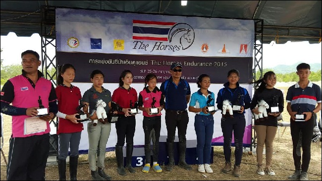 กูรูขี่ม้าทางไกล ผลงานที่เคยติดอันดับหนึ่งใน 50 ของโลก เข้าร่วมลงชิงชัยในระยะทาง 60 กิโลเมตร ร่วมด้วยนักขี่ม้าร่วมทีมอีก 1 คน ได้แก่ น.ส.สุพัตรา มั่นวงศ์ และสำหรับประเภทระยะทาง 40 กม. มี “ผึ้ง” วิภาวรรณ พาวิทยลาภ เจ้าของแชมป์สุลต่าน มิซานคัพ 2 สมัยร่วมลงชิงชัย พร้อมด้วยนักขี่ม้าร่วมทีมอีก 2 คนได้แก่ ด.ญ. จิรัญชญา แซ่ว่อง และ ด.ช. โชค จงจิตดังจง2015 ณ ราชบุรี ![]() ผลปรากฏว่าการแข่งขันในรุ่น 60 กม. แชมป์ตกเป็นของ น.ส.สุพัตรา มั่นวงศ์ ทำเวลารวมได้ 2 ชั่วโมง 24 นาที 26 วินาที ตามด้วย น.ส. อรพิน เพ็ชร์เล็ก เข้าเส้นชัยในลำดับที่ 2 และลำดับที่ 3 ตกเป็นของ น.ส. วรวิสรา สวัสดิ์กิจธำรง สำหรับผลการแข่งขันในรุ่น 40 กม. น.ส. ฉัตรรพี ภัคโภไคย เข้าเส้นชัยเป็นลำดับที่ 1 ทำเวลาไป 1 ชั่วโมง 22 นาที 10 วินาที และลำดับที่ 2 ตกเป็นของ ด.ญ. พัชชา สวัสดิ์กิจธำรง และ ด.ช. พชรพนธ์ ประกอบ เข้ามาเป็นลำดับที่ 3 และการแข่งขันในรุ่น 20 กม. รางวัลที่ 1 ตกเป็นของ ด.ญ. ธาเรนน์ แจสมิน เจมส์ ทำเวลารวมได้ 1 ชั่วโมง 18 นาที 31 วินาที และ ร.ต. ณัฐภัทร ริ้วทอง เข้ามาเป็นลำดับที่ 2 สำหรับลำดับที่ 3 ตกเป็นของสมเกียรติ แสงทอง หลังการแข่งขัน “ปั้น” พฤฒิรัตน์ ประธานสโมสรขี่ม้าเดอะ ฮอาร์สเซสและในฐานะผู้จัดการแข่งขัน กล่าวว่า ![]() “การแข่งขันในครั้งนี้ถือเป็นสนามที่สองที่จัดโดยสโมสรเดอะ ฮอร์สเซส และครั้งนี้ผมก็รู้สึกดีใจที่ได้เห็นเยาวชนหันมาใส่ใจในกีฬาขี่ม้าเอ็นดูแรนซ์กันมากขึ้นกว่าเดิม และบางคนก็มีฝีมือแทบจะเทียบเท่ากับรุ่นใหญ่ได้ ในอนาคตผมตั้งใจอยากให้มีเยาวชนมาสานต่อกีฬาประเภทนี้ ผมพร้อมที่จะพัฒนาศักยภาพ และสนับสนุนพวกเขาอย่างเต็มที่เพื่อเป็นการเปิดประวัติศาสตร์หน้าใหม่ ของวงการขี่ม้ามาราธอนไทยให้ทั่วโลกได้รู้จักมากยิ่งขึ้น และสำหรับการแข่งขันในแมทซ์ต่อไปจะมีขึ้นในต้นเดือนสิงหาคม ถือเป็นอีกหนึ่งสนามที่สำคัญมากเพราะเป็นการแข่งขันในระดับอาเซียน ซึ่งจึดขึ้นที่ประเทศมาเลเซียระหว่างวันที่ 7 - 9 สิงหาคม 2558 ผมและทีมจะต้องวางแผนการแข่งขันให้ดี โดยเฉพาะการขนส่งม้าเพื่อเดินทางเข้าไปที่มาเลเซีย ซึ่งม้าจะต้องมีเวลาพักเพื่อให้มีสภาพสมบูรณ์ที่สุดเพื่อพร้อมลงแข่งขันและคว้าชัยชนะมาให้ได้สำหรับการแข่งขันในรายการนี้ยังเป็นการสานสัมพันธ์กันระหว่างประเทศต่างๆ ที่เข้ามาร่วมการแข่ง ขันอีกด้วย” น.ส.สุพัตรา มั่นวงศ์ กล่าวถึงความรู้สึกหลังคว้าแชมป์ว่า “รู้สึกดีใจมากๆ และดีใจกับทีมงานทุกคนที่ทำงานกันอย่างมุ่งมั่นและทุ่มเท ส่วนหนึ่งที่ทำให้ได้แชมป์ในรายการนี้คิดว่าเป็นผลมาจากการฝึกซ้อ