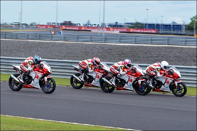 บุรีรัมย์- วรพรต เนียมสุคนธสกุล นักบิดดาวรุ่งชาวไทยจาก เอ.พี.ฮอนด้า เรซซิ่ง ไทยแลนด์ ผงาดขึ้นโพเดี้ยมครั้งแรกของชีวิตในศึก เอเชีย ดรีม คัพ สนาม 4 เรซ 2 ต่อหน้าแฟนความเร็วในบ้านเกิด ขณะ มุกข์ลดา สารพืช นักบิดสาวไทยอดคว้าแชมป์ 2 เรซติดต่อกันหลังพลาดล้มรอบสุดท้ายขณะรั้งอันดับ 2 เอเชีย โร้ด เรซซิ่ง แชมเปี้ยนชิพ 2015 สนาม 4 ที่ ช้าง อินเตอร์เนชั่นแนล เซอร์กิต จ.บุรีรัมย์ เมื่อบ่ายวันอาทิตย์ที่ผ่านมา ![]() ศึกรถจักรยานยนต์ทางเรียบชิงแชมป์เอเชีย รายการ เอเชีย โร้ด เรซซิ่ง แชมเปี้ยนชิพ 2015 มีคิวดวลความเร็วสนาม 4 ระหว่างวันที่ 28-30 สิงหาคมนี้ ที่สนามช้าง อินเตอร์เนชั่นแนล เซอร์กิต จ.บุรีรัมย์ ระยะทางต่อรอบ 4.554 กิโลเมตร โดยในช่วงบ่ายวันอาทิตย์ที่ 30 สิงหาคมนี้ เป็นการชิงชัยเรซ 2 ของรุ่น เอเชีย ดรีม คัพ ดวลความเร็วทั้งสิ้น 8 รอบสนาม กริดสตาร์ทเรซนี้มี ฮิโรกิ นากามูระ นักบิดญี่ปุ่นเป็นเจ้าของโพลโพซิชั่น โดยมี มุกข์ลดา สารพืช จ่าฝูงชาวไทยขนาบข้างในกริดที่ 2 ส่วนกริดที่ 3 เป็นของ ยูซูเกะ นากามูระ นักบิดญี่ปุ่นอีกราย ขณะที่ วรพรต เนียมสุคนธสกุล นักบิดไทยอีกรายได้ออกตัวจากกริดที่ 8 ![]() เกมเรซนี้ยังคงขับเคี่ยวกันสนุดเช่นเคย เนื่องจากรถแข่งทุกคันมีสมรรถนะเท่ากันหมด โดยกลุ่มหัวแถวเป็นการขับเคี่ยวกันระหว่าง มุกข์ลดา, ฮิโรกิ นากามูระ และ ยูซูเกะ นากามูระ รวมไปถึงตัวสอดแทรกอย่าง มุห์ด เฟเบรียนซยาห์ นักบิดอินโดนีเซียน, ฮาฟิซ นอร์ อาซมัน นักบิดชาวมาเลเซียน และ วรพรต นักบิดไทยที่ขยับขึ้นมาอยู่ในกลุ่ม 6 คันแรก ด้วย ![]() โดยเกมการแข่งขันเข้มข้นจนถึงรอบสุดท้าย ซึ่งเป็นจุดเปลี่ยนสำคัญเมื่อ มุกข์ลดา จ่าฝูงบนตารางแชมเปี้ยนชิพ และแชมป์เรซแรกจากวันอาทิตย์ พลาดล้มในโค้ง 9 ขณะพยายามไล่แซง ฮิโรกิ นากามูระ เพื่อขึ้นเป็นผู้นำ ก่อนเกี่ยวกันกับ ยูซูเกะ นากามูระ ส่งผลให้นักบิดไทยทั้งคู่ต้องออกจากการแข่งขันทันที ขณะที่ ยูซูเกะ นากามูระ ลุกขึ้นมาบิดต่อจนจบเรซในอันดับสุดท้าย ![]() สำหรับแชมป์เรซนี้ตกเป็นของ ฮิโรกิ นากามูระ ตามด้วย วรพรต ที่ขยับขึ้นมาคว้าอันดับ 2 ตามหลังแชมป์ 1.441 วินาที ได้ขึ้นโพเดี้ยมในศึก เอเชีย ดรีม คัพ ครั้งแรกในชีวิต และเป็นการคว้าโพเดี้ยมต่อหน้าแฟนความเร็วชาวไทยด้วย ส่วนอันดับ 3 เป็นของ ฮาฟิซ นอร์ อาซมัน นักบิดมาเลเซียน อย่างไรก็ดี มุกข์ลดา ที่แม้จะพลาดการคว้าแชมป์ 2 เรซ ติดต่อกันในบ้านเกิด แต่ยังคงรักษาตำแหน่งผู้นำบนตารางแชมเปี้ยนชิพไว้ได้ โดยสนามถัดไปของ เอเชีย โร้ด เรซซิ่ง แชมเปี้ยนชิพ 2015 จะโยกไปแข่งขันที่ โลแซล อินเตอร์เนชั่นแนล เซ