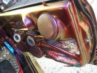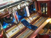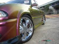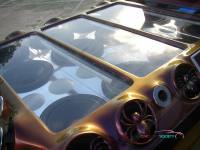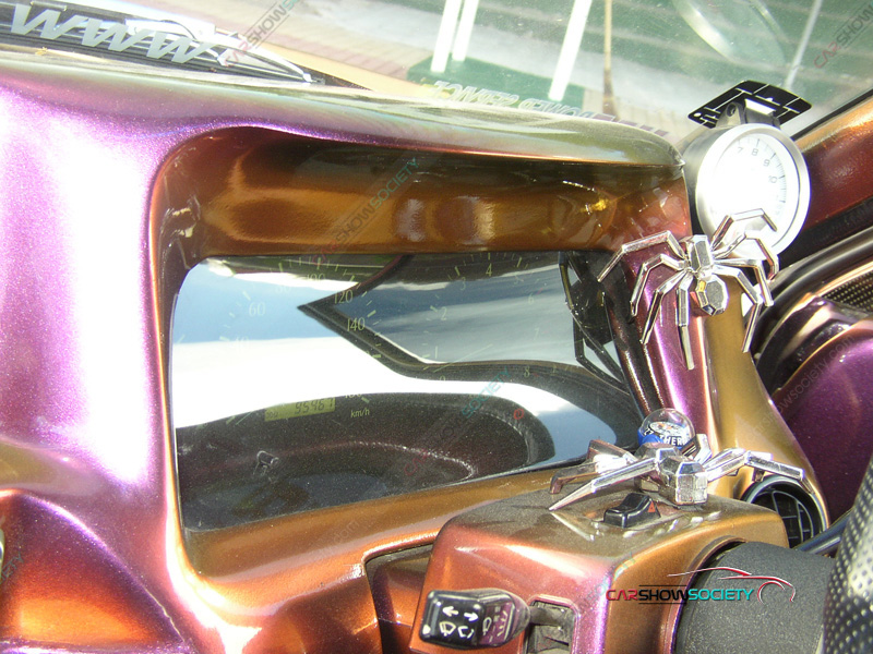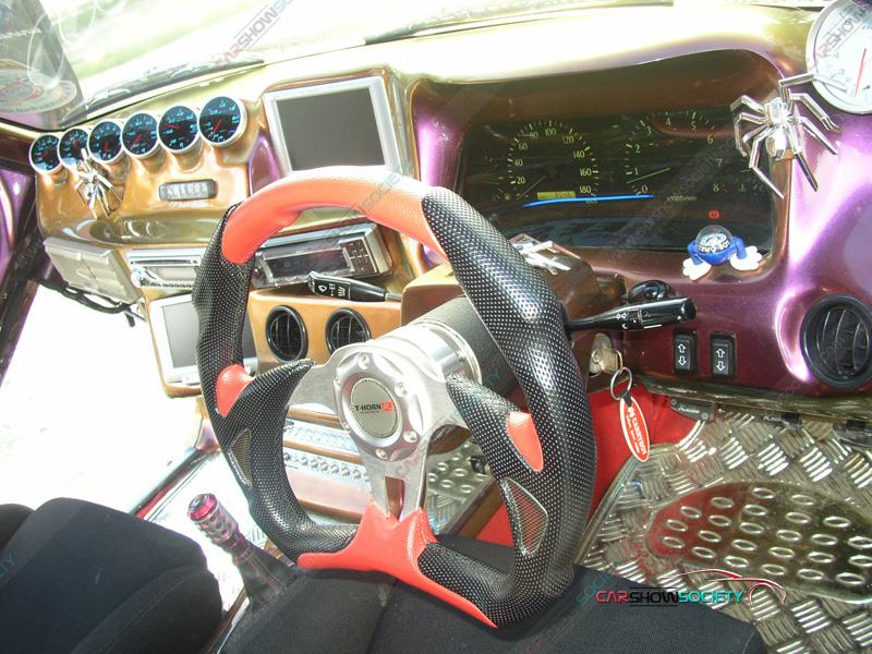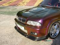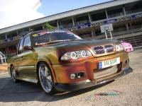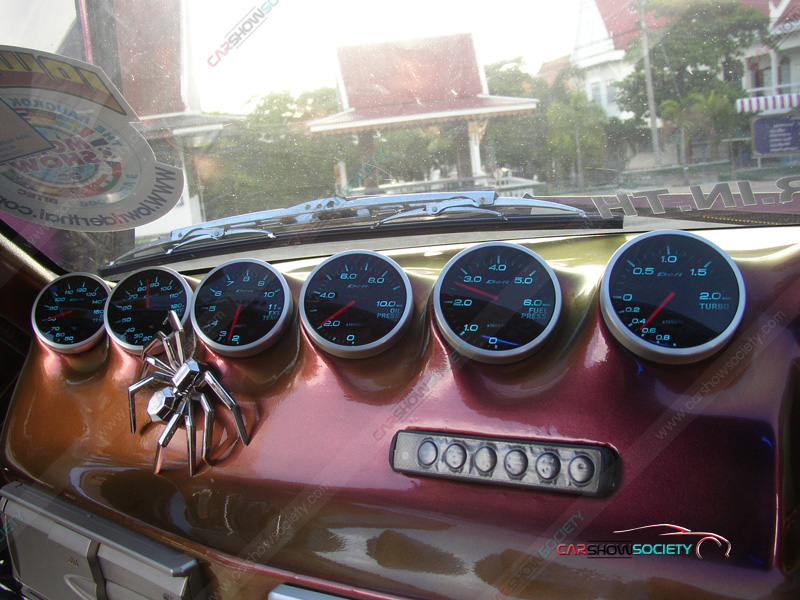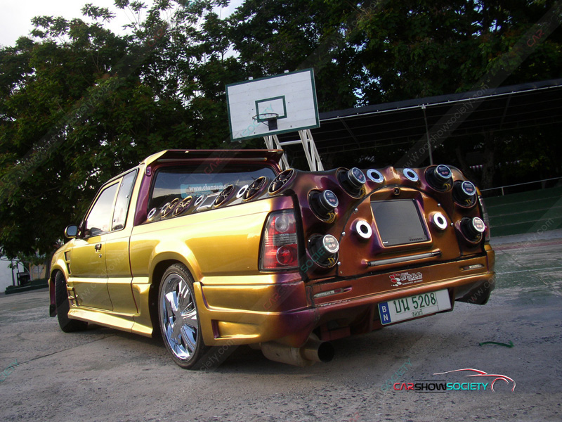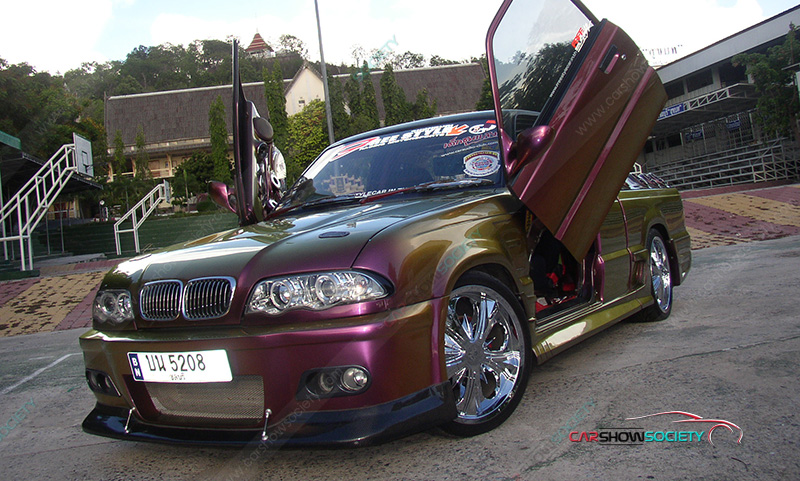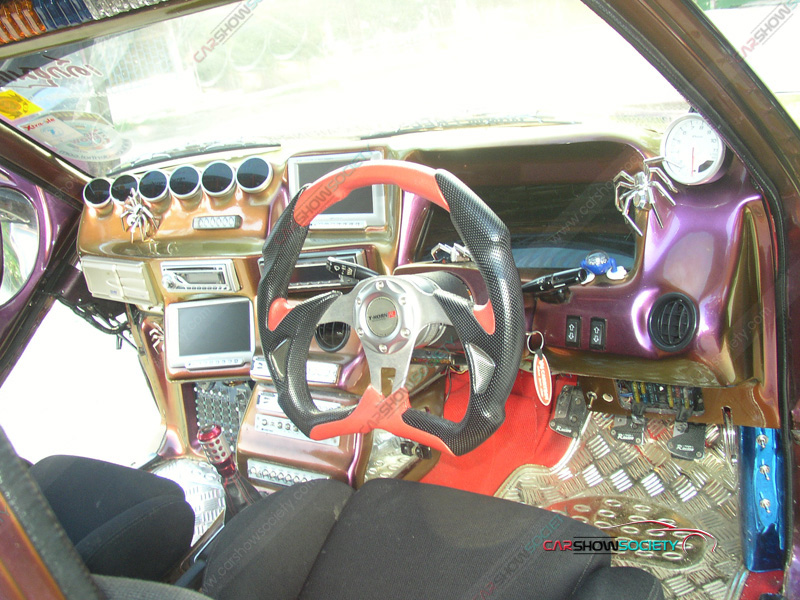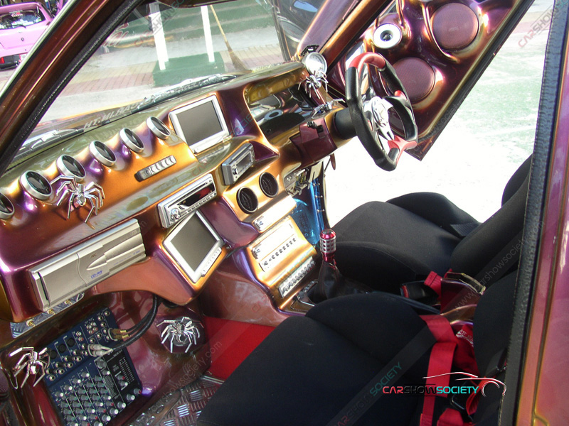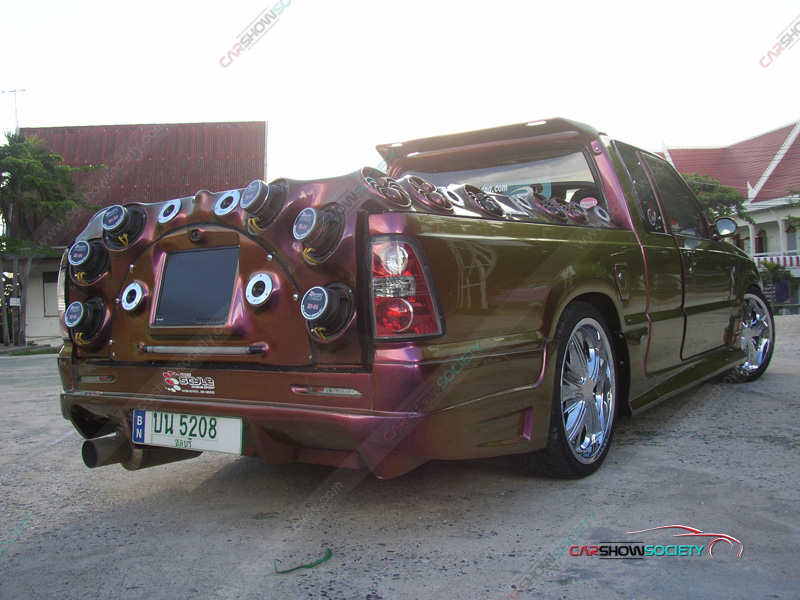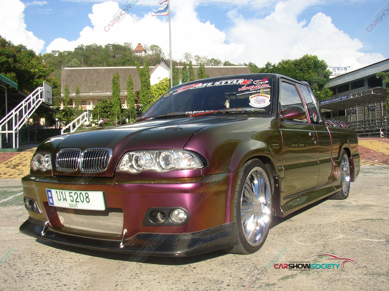 แต่ก็ไม่ใช่เรื่องง่ายกว่าจะเผยไต๋ออกมาเท่ได้ ซึ่งกระบะมาสด้า ไฟท์เตอร์ ที่นำมาอวดกันนี้ดูไปแล้วเป็นรถโชว์ของสำนักแต่ง FREE STYLE ที่ไว้สำหรับออกงานโดยเฉพาะ เพราะแค่หน้าตาก็ชักชวนให้คนหันมามองได้แล้วกับโฉมหน้าของบีเอ็มดับบลิว ซีรีส์ 3 พร้อมปรับแต่งใส่ชุดบอดี้พาร์ทรอบคัน และสลับขุมพลังความแรงมาเล่น 1JZ –GTE สามารถตอบสนองได้ทันใจขึ้น ที่สำคัญหนักแน่นด้วยพลังเสียงที่ตีตู้จนเต็มกระบะท้ายอัดยัดลำโพงนับดอกไม่ถ้วน เล่นสีเอฟเฟคแปลงโฉมหน้าซีรีส์ 3 ดีไซน์กันชนเสริมลิ้นหน้าเคฟลาร์ แรกเห็นก็รู้ได้ทันทีว่าเจ้ามาสด้า ไฟท์เตอร์คันนี้เล่นละเลงสีให้ไม่ซ้ำใครมาในแบบสีเอฟเฟคให้สีได้หลากหลายตามแสงที่มากระทบ พร้อมกันได้ปรับหน้าตาเสียใหม่เพราะเป็นรถกระบะรุ่นเก่าที่ว่าไปแล้วอาจดูไม่ค่อยเข้าท่าเท่าไหร่ แต่เมื่อจับมาศัลยกรรมใหม่ด้วยการเปลี่ยนหน้าตามาเป็น BMW SERIES 3 ซึ่งเป็นรถหรูดูดีมีระดับ จึงสามารถขยับเพิ่มดีกรีขึ้นมาได้และ ทำให้กลายเป็นกระบะหน้าตาดีไปโดยปริยาย ![]() แต่งานนี้ก็ต้องยอมเปลี่ยนทั้งไฟหน้าที่มาในสไตล์โปรเจคเตอร์แบบ 2 ดวงที่ฝังอยู่โคมเดียวกัน พร้อมกับแก้มข้างซ้าย-ขวา และฝากระโปรงหน้า รวมไปถึงกระจังหน้าทรงไตคู่เอกลักษณ์ของบีเอ็มฯ ทั้งนี้เพื่อให้ชิ้นส่วนสามารถที่จะสอดรับกันได้อย่างลงตัวและที่ฝากระโปรงหน้าก็ออกแบบให้มีช่องระบายความร้อนให้กับเครื่องยนต์ด้วย ส่วนที่กันชนหน้าที่ดีไซน์ใหม่ให้ดุดันกว่าเดิม โดยช่องดักลมตรงกลางมาในทรงสี่เหลี่ยม ที่เผยให้เห็นอินเตอร์คูลเลอร์ขนาดใหญ่พอเหมาะ พร้อมกับเจาะช่องด้านข้างอีกข้าง ๆสองช่องเพื่อฝังไฟสปอร์ตไลท์ทรงกลมตามสไตล์ของรถเรซซิ่ง ขณะที่ลิ้นหน้าที่เสริมเข้าไปนั้นได้หล่อขึ้นมาด้วยเคฟลาร์ ท้าทายสายตาได้อย่างดี และยังมีก้านสแตนเลสดึงยึดไว้อีกที ติดโปร่งข้างลงล้อลายแปลก อินเทรนด์แปลงประตูกาลวิง แต่เมื่อดูด้านข้างได้ติดโปร่งข้างล้อที่มีลูกเล่น โดยได้เจาะเป็นแบบสองช่องเพื่อระบายความร้อนจากระบบเบรก เพื่อให้สามารถครอบคลุมล้อแม็กโครเมี่ยมลายแปลก ขนาดขอบ 18 นิ้ว ซึ่งแค่เห็นแต่ไกลก็สะดุดตาแล้ว เพราะเป็นงานดีไซน์เฉพาะตัวออกมาในแนวคล้ายครีบปลา ควบคู่กับยางหน้ากว้างแก้มเตี้ยเพื่อช่วยให้เกาะถนนดียิ่งขึ้น และยังแนบด้วยสเกิร์ตข้างที่ออกแบบให้เข้ากับสไตล์ของรถ ตามมาด้วยกระจกมองข้างที่ปรับเป็นของ GARNADOR เพื่อให้ดูสปอร์ตมากขึ้น แต่ที่เหนือกว่านั้นเห็นจะเป็นประตูที่เล่นดัดแปลงให้กลายมาเป็นแบบกาลวิง หรือประตูกรรไกร ที่เวลานี้อินเทร