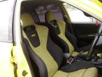 สำหรับพวงมาลัยทรงสปอร์ตนั้นเป็นของ MOMO ที่มีแอร์แบคมาให้ด้วย ตามมาด้วยแผงข้างประตูทั้ง 4  บาน ก็เปลี่ยนใหม่ด้วย ยกเว้นเบาะนั่งที่ไม่ยอมใช้ของ EVO VI แต่ก็ใช้ของยี่ห้อ RECARO เช่นกัน เพียงต่างรุ่นกัน  ซี่งเบาะหน้าจะเป็นรุ่น TOMCAT ในแบบตาข่ายเหลือง ที่นอกจากเท่บาดตาแล้วตัวเบาะยังมีสายปั๊มลมสามารถปรับบริเวณพนักพิงให้นูนขึ้นมาได้เพื่อรอบรับกระดูกสันหลัง   ทำให้เวลาขับรถทางไกลแล้วไม่เมื่อย  ตลอดจนเบาะนั่งที่ส่วนปลายของเบาะสามารถเลื่อนออกได้เพื่อให้รองบริเวณด้านหลังของต้นขาได้พอดี