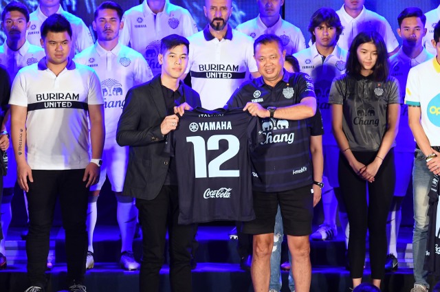 เพื่อเป็นการตอกย้ำผู้นำทางด้านสปอร์ตมาร์เก็ตติ้งอย่างแท้จริง นายวราธร เจนจรัสสกุล (คนซ้าย) ผู้จัดการส่วนกิจกรรมการตลาดและกิจกรรมสนับสนุน บริษัท ไทยยามาฮ่ามอเตอร์ จำกัด ร่วมงานแถลงข่าวเปิดตัวนักเตะ และผู้สนับสนุน สโมสรบุรีรัมย์ ยูไนเต็ด ประจำฤดูกาล 2017 อย่างเป็นทางการ พร้อมทั้งรับมอบเสื้อผู้สนับสนุนสโมสรบุรีรัมย์ ยูไนเต็ด โดยมีนายเนวิน ชิดชอบ (คนขวา) ประธาน บริษัท บุรีรัมย์ ยูไนเต็ด จำกัด เป็นผู้มอบ โดยในปีนี้ “ปราสาทสายฟ้า” บุรีรัมย์ ยูไนเต็ด ตั้งเป้าที่จะกลับมาทวงบัลลังก์แชมป์ฟุตบอลภายในประเทศกลับคืนสู่จังหวัดบุรีรัมย์ให้ได้ทุกแชมป์ โดยงานแถลงข่าวครั้งนี้จัดขึ้น ณ โรงแรม อมารี บุรีรัมย์ เมื่อเร็วๆ นี้