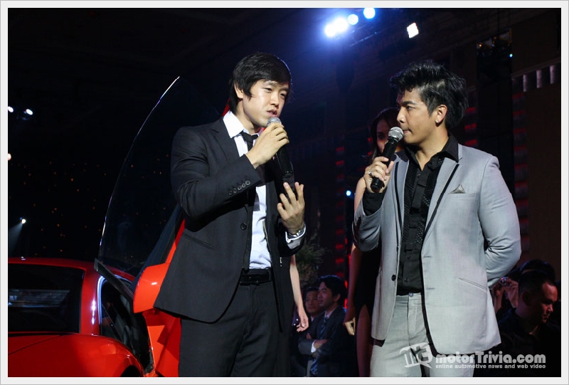 (ซ้าย) คุณแชมป์ - วิทวัส ชินบารมี กรรมการผู้จัดการ บริษัท นิช คาร์ จำกัด และ ดีเจพีเค - คุณปิยะวัฒน์ เข็มเพชร รับหน้าที่พิธีกรในงาน