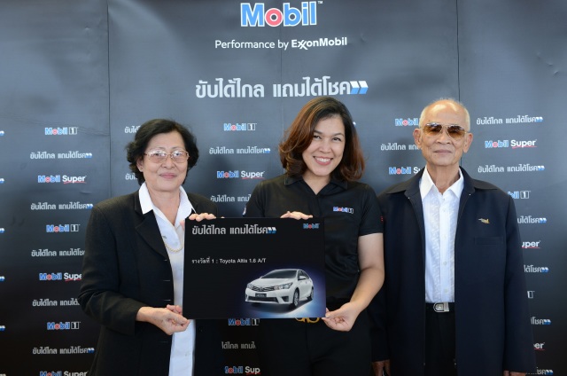 กรุงเทพฯ : บริษัท เอสโซ่ (ประเทศไทย) จำกัด มหาชน นำโดยนางสาวจิราพรรณ เปาวรัตน์ ผู้จัดการฝ่ายขายผลิตภัณฑ์หล่อลื่นยานยนต์ ประจำภูมิภาคเอเชียตะวันออกเฉียงใต้ มอบรางวัลใหญ่ รถยนต์โตโยต้า โคโรลล่า อัลติสและรถกระบะโตโยต้า ไฮลักซ์ รีโว่ สร้อยคอทองคำหนักหนึ่งบาท ไอโฟน 6S และรางวัลอื่นๆรวม 93 รางวัล มูลค่ากว่า 6,500,000 บาท แก่ผู้โชคดีจากแคมเปญ "ขับได้ไกล แถมได้โชค" จากน้ำมันเครื่อง โมบิล ทั้งหมด 3 ครั้ง