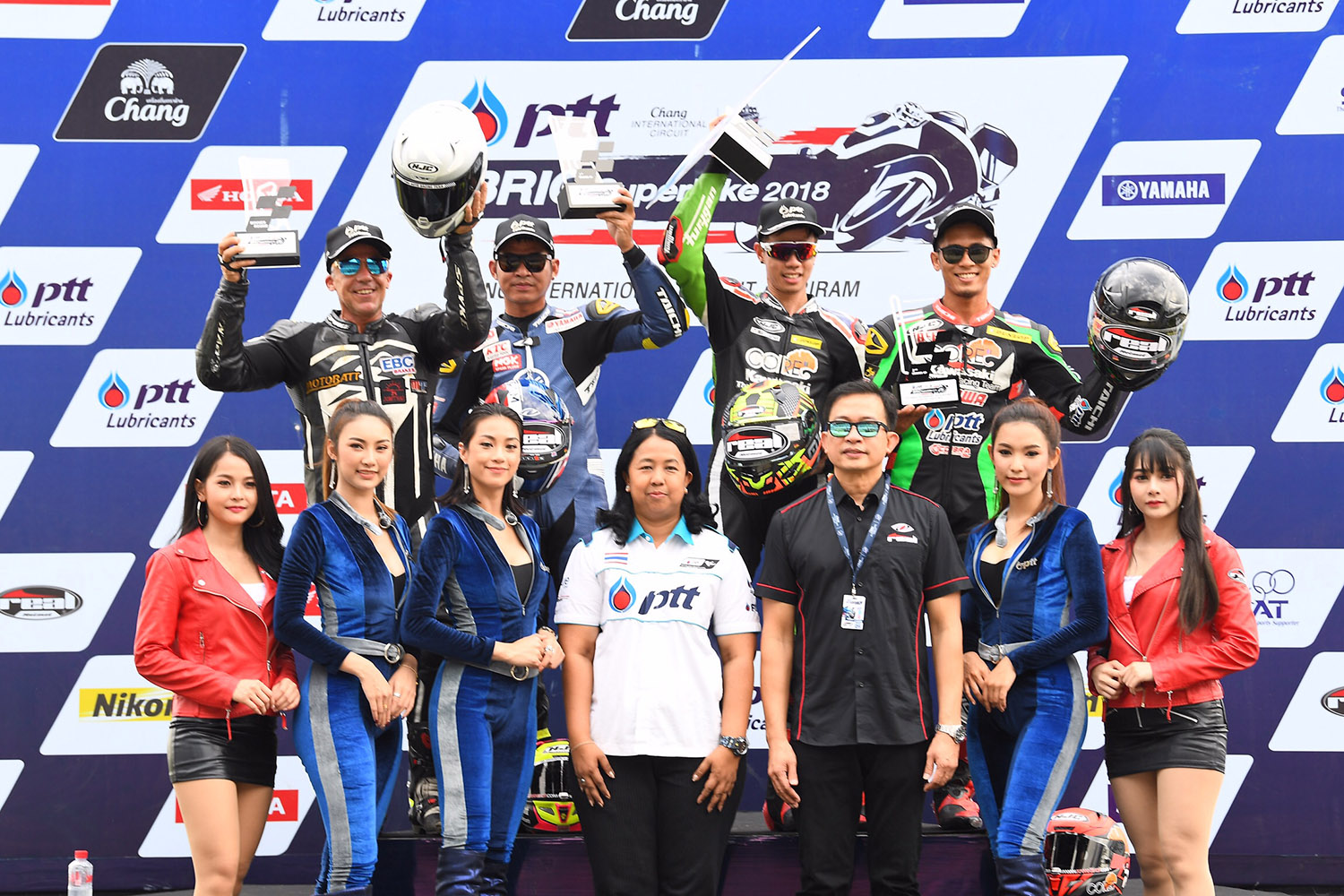 พีทีที บีอาร์ไอซี ซูเปอร์ไบค์ 2018” เปิดฉากสุดมันส์ “ฐิติพงศ์” เฉือน “อนุชา” คว้าแชมป์สนามแรก ศึกสองล้อชิงแชมป์ประเทศไทย พีทีที บีอาร์ไอซี ซูเปอร์ไบค์ แชมเปี้ยนชิพ 2018 เปิดฉากดวลความเร็วสนามแรกสุดมันส์ เกมรุ่นใหญ่ ซูเปอร์ไบค์ เอสบี1 ดวลเดือด ฐิติพงศ์ วโรกร จาก คอร์ คาวาซากิ ไทยแลนด์ เรซซิ่ง ทีม เฉือน อนุชา นาคเจริญศรี จาก ยามาฮ่า ไรเดอร์ส คลับ เรซซิ่ง ทีม ผงาดแชมป์แรกของปีหลังจบเกมที่ สนามช้าง อินเตอร์เนชั่นแนล เซอร์กิต จ.บุรีรัมย์ เมื่อสุดสัปดาห์ที่ผ่านมา การแข่งขันจักรยานยนต์ทางเรียบชิงแชมป์ประเทศไทย รายการ พีทีที บีอาร์ไอซี ซูเปอร์ไบค์ แชมเปี้ยนชิพ 2018 สนามแรก เปิดฉากดวลความเร็วอย่างเป็นทางการเมื่อวันอาทิตย์ที่ 17 มิถุนายนที่ผ่านมา ที่สนามช้าง อินเตอร์เนชั่นแนล เซอร์กิต จ.บุรีรัมย์ ระยะทางต่อรอยบ 4.554 กิโลเมตร ไฮไลต์ในปีนี้ยังคงอยู่ที่เกมในรุ่นใหญ่อย่าง ซูเปอร์ไบค์ 1000 ซี.ซี. (เอสบี1-2) ซึ่งมีแชมป์ประเทศไทยและสิทธิ์ไวด์การ์ดเข้าร่วมแข่งขันในศึก เวิลด์ ซูเปอร์ไบค์ แชมเปี้ยนชิพ 2019 เป็นเดิมพัน โดยตำแหน่งโพลสนามแรกเป็นของ อนุชา นาคเจริญศรี จาก ยามาฮ่า ไรเดอร์ส คลับ เรซซิ่ง ทีม ขนาบข้างด้วยแชมป์เก่าอย่าง ฐิติพงศ์ วโรกร และ ชัยวิชิต นิสสกุล จาก คอร์ คาวาซากิ ไทยแลนด์ เรซซิ่ง ทีม