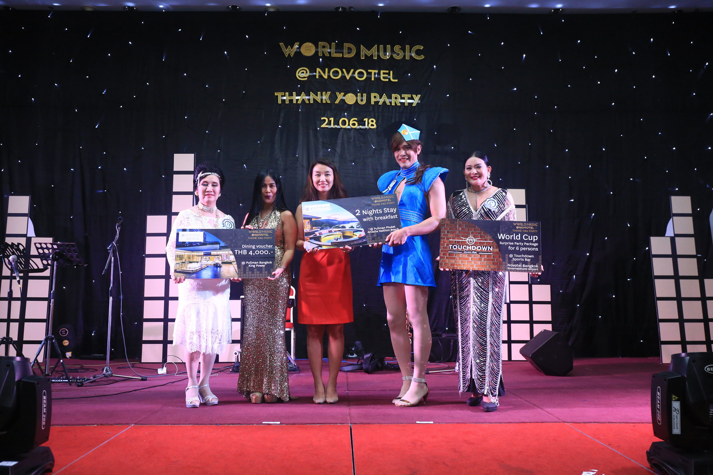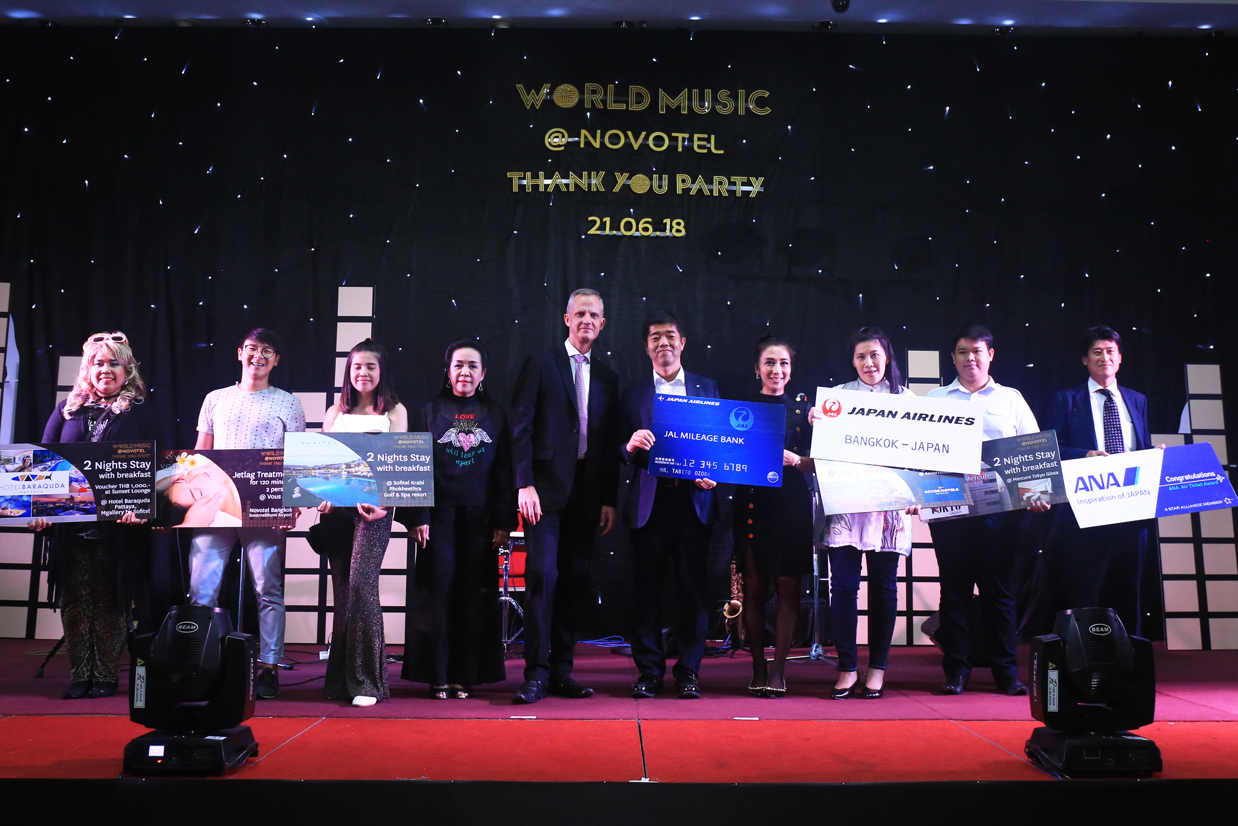 โนโวเทล สุวรรณภูมิ จัดงานเลี้ยงขอบคุณลูกค้าประจำปี 2561“เวิล์ด มิวสิค แอท โนโวเทล” เมื่อเร็วๆนี้ โรงแรมโนโวเทล สุวรรณภูมิ แอร์พอร์ต นำโดย คริสตอฟ เจอโฟรย์ (ที่ 4 จากขวา) ผู้จัดการทั่วไป จัดงานเลี้ยงขอบคุณลูกค้าประจำปี 2561 ในธีม “เวิล์ด มิวสิค แอท โนโวเทล” จำลองบรรยากาศงานคอนเสิร์ตระดับโลก ณ ห้องสุวรรณภูมิ แกรนด์บอลรูม โดยมีการแสดงมินิคอนเสิร์ตจากนักแสดงหน้าเหมือนศิลปินดังจากไทยและต่างประเทศ อาทิ เลดี้ กาก้า, บีเอ็นเค 48, ไมเคิล แจ็คสัน, มาดอนน่า, เบิร์ด ธงไชย, หญิงลี และติ๊ก ชีโร่ นอกจากนี้ ยังจัดกิจกรรมลุ้นรับรางวัลพิเศษมากมาย โดยมีรางวัลใหญ่คือตั๋วเครื่องบินไป-กลับเมืองซัปโปโร ประเทศญี่ปุ่น พร้อมที่พักโรงแรมเมอร์เคียว ซับโปโรและไอบิซ สไตล์ ซัปโปโร ผู้โชคดีที่ได้รับรางวัลนี้ได้แก่ Vanak Choup (ที่ 4 จากซ้าย), First Secretary of the Royal Embassy of Cambodia งานดังกล่าว จัดขึ้นเพื่อขอบคุณลูกค้าผู้มีอุปการคุณ, พันธมิตรทางธุรกิจและสื่อมวลชนที่ให้การสนับสนุนที่ดีตลอดมา ภาพที่ 2 ดร. เทเรซา วิรัชนีพรหมสุนทร (กลาง) อุปนายก สภาวิทยาลัยนานาชาติเซนต์เทเรซาและสุวัฒน์ เบญจธรรมธร (ที่ 2 จากขวา) มอบกระเช้าดอกไม้แสดงความยินดีแก่ คริสตอฟ เจอโฟรย์ (ที่ 2 จากซ้าย) ผู้จัดการทั่วไป พร้อมวอนมี โร (ขวาสุด) ผู้อำนวยการฝ่ายขายและการตลาดและบุญสิตา เปล่งฮวด (ซ้ายสุด) ผู้ช่วยผู้จัดการฝ่ายขาย ภาคองค์กร ภาพที่ 3 พรเลิศ กาญจนนิตย (ที่ 9 จากซ้าย) รักษาการประธานคณะกรรมการดำเนินงานธุรกิจการบินและกลุ่มสมาชิกให้เกียรติร่วมงาน โดยมี คริสตอฟ เจอโฟรย์ (ที่ 5 จากขวา) ผู้จัดการทั่วไปและวราภรณ์ ใจการ (ซ้ายสุด) ผู้จัดการฝ่ายขาย สายการบิน ให้การต้อนรับ