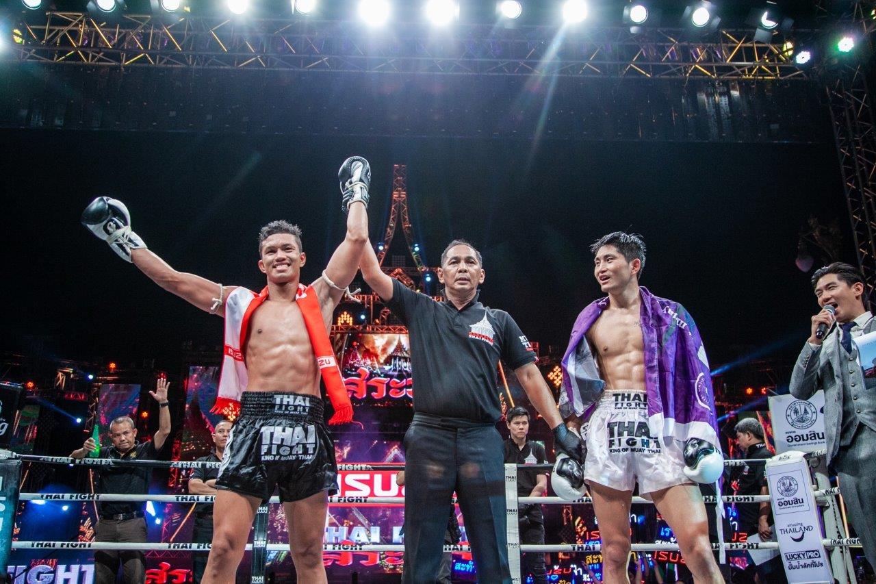 ผลการแข่งขัน THAI FIGHT 2018 รอบรองชนะเลิศ มีดังนี้ คู่ที่ 1 ราชสิงห์ โรงเรียนกีฬาโคราช (ไทย) ชนะน็อก ซอ ทู ซอ (เมียนมา) คู่ที่ 2 สะท้านฟ้า ศิษย์นายกชายสงขลา (ไทย) ชนะคะแนน หวัง ถังเย่ (จีน) คู่ที่ 3 แก้ว รุมจอง (กัมพูชา) แพ้น็อก โอเล็คซานเดอร์ มอยซ่า (ยูเครน) คู่ที่ 4 ชนะจน พี.เค.แสนชัยมวยไทยยิม (ไทย) ชนะน็อก เรซ่า อาหมัดเนซ๊าด (อิหร่าน) คู่ที่ 5 กิตติ ส.จ.แดนระยอง (ไทย) ชนะน็อก อันทอน ทอล์มิต (รัสเซีย) คู่ที่ 6 พยัคฆ์สมุย ลูกเจ้าพ่อโรงต้ม (ไทย) ชนะน็อก มูฮัมหมัด คาลิล (นอร์เวย์) คู่ที่ 7 เพชรสมุย ลูกเจ้าพ่อโรงต้ม (ไทย) ชนะคะแนน มาเทียส ยอนส์สัน (สวีเดน) คู่ที่ 8 แสนสะท้าน คลองสวนพลูรีสอร์ท (ไทย) ชนะน็อก รุสลาน อตาเยฟ (รัสเซีย) คู่ที่ 9 แสนชัย พี.เค.แสนชัยมวยไทยยิม (ไทย) ชนะน็อก ซิฟ เอล อิซลาม ดีเจไบลี่ (แอลจีเรีย) ********************************* สำนักงานประชาสัมพันธ์ บริษัท ตรีเพชรอีซูซุเซลส์ จำกัด โทร. 0-2966-2127-9