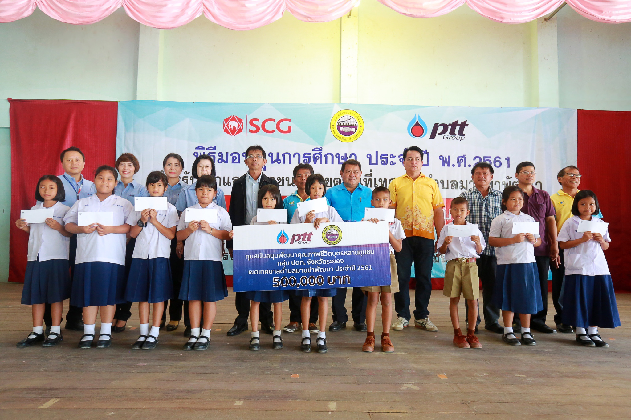 ![]() และในวันนี้ กลุ่ม ปตท. จังหวัดระยอง จัด ‘ พิธีมอบทุนการศึกษาและทุนสนับสนุนโครงการโรงเรียน ประจำปี 2561’ ให้แก่ เยาวชนและโรงเรียน จำนวน 147 ทุน รวมมูลค่า 2,418,000 บาท ซึ่งประกอบด้วย ทุนสนับสนุนโครงการโรงเรียน จำนวน 21 โรงเรียน รวม 21 ทุน / ทุนเรียนดีระดับชั้นมัธยมศึกษาตอนปลาย จำนวน 18 ทุน และ ทุนการศึกษาต่อเนื่องโครงการสร้างโอกาสทางการศึกษา จำนวน 108 ทุน ณ ห้องประชุม Auditorium อาคารอำนวยการ บริษัท พีทีที โกลบอล เคมิคอล จำกัด (มหาชน) (สำนักงานระยอง)