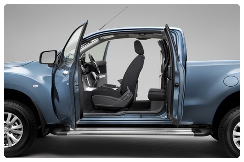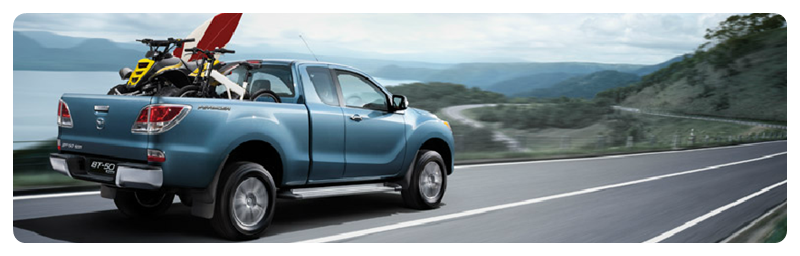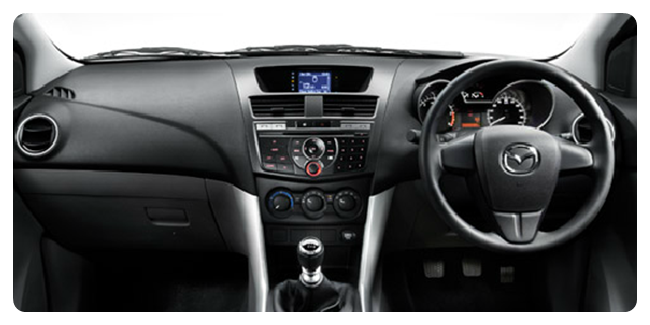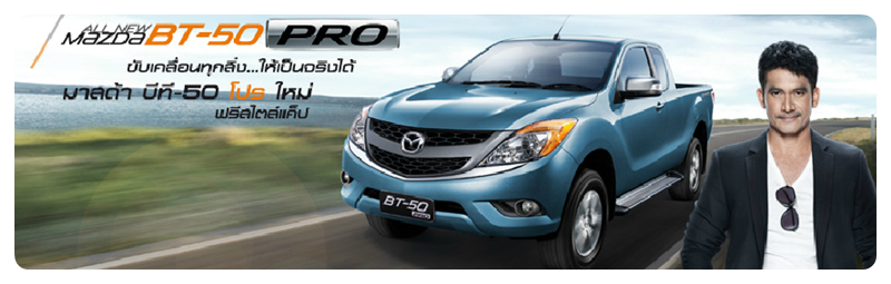 กระจังหน้าห้าเหลี่ยม เอกลักษณ์การออกแบบอันเป็นเสมือนตัวแทนจิตวิญญาณ สปอร์ตที่มีอยู่บนรถมาสด้าทุกคัน ตั้งแต่รถสปอร์ตจนไปถึงรถปิกอัพ ![]() ไฟหน้าดีไซน์ใหม่ล่าสุด เสริมความสปอร์ตเท่ด้วยรูปทรงของบูมเมอแรง ให้ความสวยงาม และประสิทธิภาพในการส่องสว่างเพื่อทัศนวิสัยที่ปลอดภัย ซุ้มล้อขนาดใหญ่ที่ออกแบบให้รวมเป็นชิ้นเดียวกับตัวรถ และคงไว้ซึ่งความกลมกลืนที่สวยงาม กระจกมองข้างพร้อมไฟเลี้ยว เพิ่มความหรูสไตล์สปอร์ต ไฟท้ายดีไซน์ใหม่ล่าสุด สไตล์รถเก๋งออกแบบรูปทรงตามแนวนอนแยกเป็นสองส่วนตามแบบรถยนต์นั่ง ![]() ล้ออัลลอย 17 นิ้ว น้ำหนักเบา ช่วยเพิ่มประสิทธิภาพการขับขี่ของรถ พร้อมเสริมความสวยงามด้วยลวดลายแนวสปอร์ต ภายในของ Mazda BT-50 PRO ใหม่ ให้ ความรู้สึกเช่น เดียวกับห้องโดยสารของรถยนต์นั่งคลาสหรู แนวคิดการออกแบบใหม่ในรูปแบบค๊อกพิทดีไซน์ (Cockpit Design) นี้ถูกนำเข้ามาแทนที่การออกแบบภายในของรถปิกอัพแบบเดิมๆ เพราะเน้นให้รูปทรงภายในโอบรับผู้ขับขี่และผู้โดยสาร อันเป็นคอนเซ็ปต์ที่มาจากการออกแบบรถสปอร์ตหรู Mazda BT-50 PRO ใหม่ ให้ความสำคัญกับตำแหน่งการนั่ง การใช้งานและการควบคุมอุปกรณ์ภายใน ความสะดวกสบายของผู้โดยสาร และการเดินทางที่เป็นหนึ่งเดียวกับตัวรถให้มากที่สุด พร้อมตกแต่งส่วนต่างๆ ของห้องโดยสารด้วยวัสดุสีเงิน โดยการออกแบบทุกจุดยังคงไว้ซึ่งความต้องการพื้นฐานของการใช้งานรถปิกอัพ อย่างครบถ้วน คอนโซลหน้าออกแบบให้เชื่อมต่อกับแผงประตู และคอนโซลกลางแบบไร้ร้อยต่อ ให้ความรู้สึกเป็นหนึ่งเดียวกันของดีไซน์ส่วนหน้าในห้องโดยสาร - พวงมาลัยสามก้านทรงสปอร์ต สไตล์เฉกเช่น รถยนต์นั่งหรู - แผงหน้าปัด และมาตรวัดความเร็วทรงกลมแบบไร้ขอบ (Hoodless Design) ออกแบบแยกส่วนเป็นอิสระจากกัน เสริมรับกับช่องแอร์รูปทรงกลมที่เป็นดีไซน์ของรถสปอร์ตหรูของมาสด้า จอแสดงข้อมูลการขับขี่ MID (Multi-Info Display) แสดงรายละเอียดที่เป็นประโยชน์แก่ผู้ขับขี่ได้ครบถ้วน - เพิ่มสุนทรียภาพในการเดินทางด้วยระบบเครื่องเสียงที่รองรับการเล่นไฟล์ MP3 และ WMA พร้อมช่อง USB / AUX เชื่อมต่อ iPod และ อุปกรณ์เครื่องเล่นเพลงพกพาอื่นๆ - ระบบเชื่อมต่อโทรศัพท์เคลื่อนที่ผ่านชุดเครื่องเสียงด้วยสัญญาณ Bluetooth เพื่อความสะดวกและปลอดภัยระหว่างขับขี่ จอแสดงฟังก์ชั่นอเนกประสงค์ MFD (Multi-function Display) แบบ DOT MATRIX แสดงการเชื่อมต่อสัญญาณ Bluetooth กับโทรศัพท์เคลื่อนที่ และการเชื่อมต่อผ่าน USB/AUX จอแสดงฟังก์ชั่นอเนกประสงค์ MFD แบบ 2 LINE บานประตูแบบแค็ปเปิดได้ “ฟรีสไตล์แค็ป” (Freestyle Cab) สามารถเปิดประตูแค็ปได้กว้างถึง 90 องศา พร้อมช่องเก็บของอเนกป