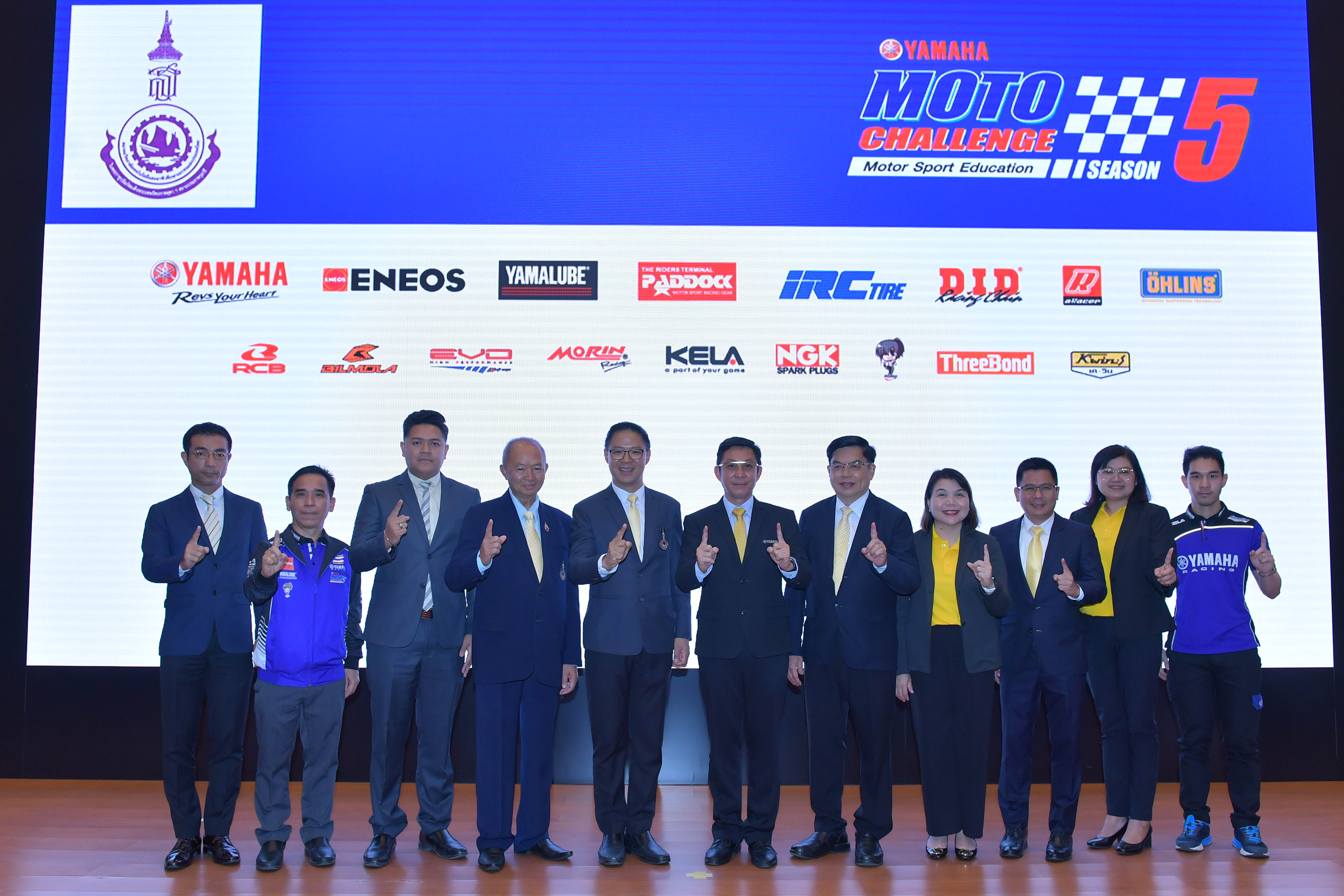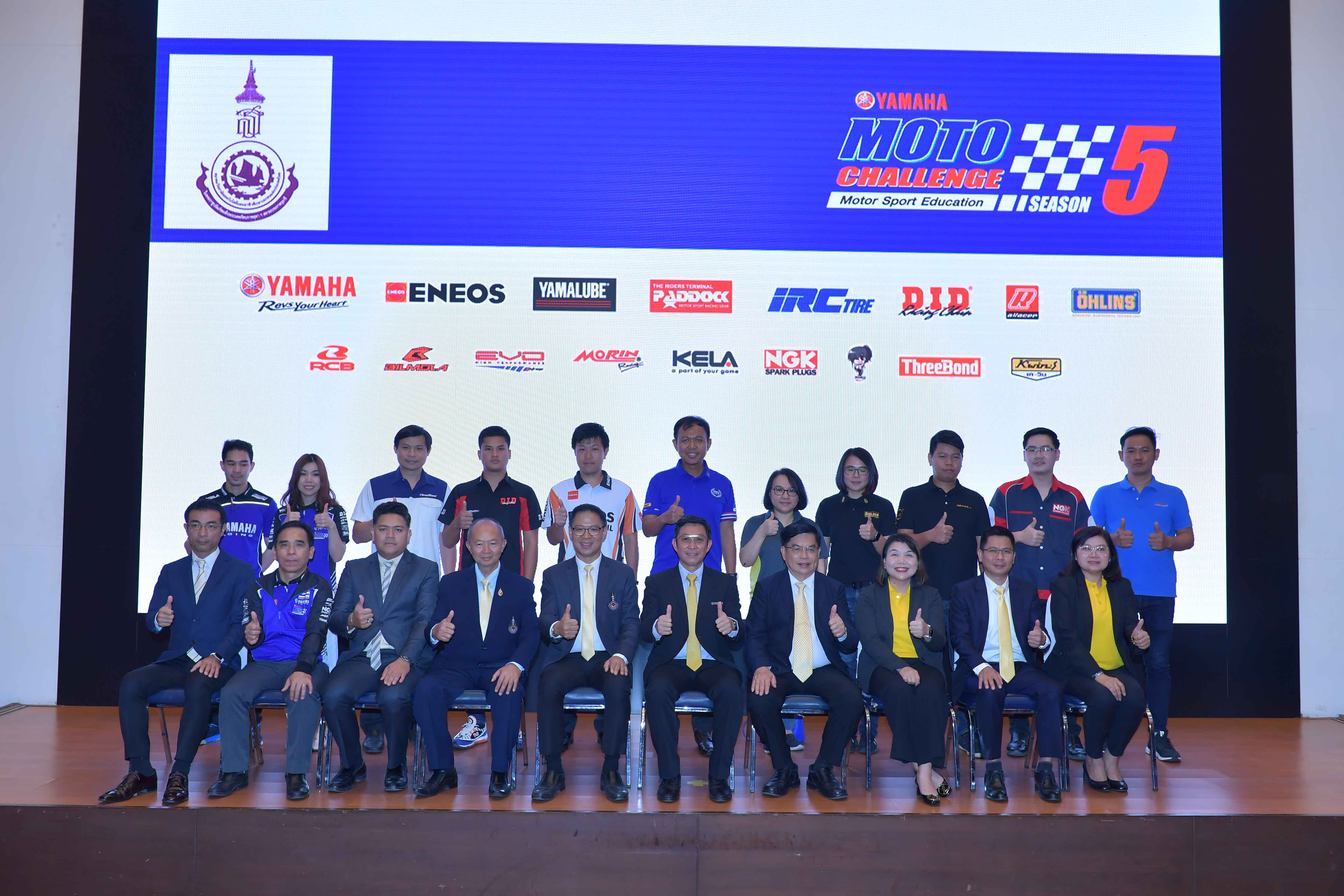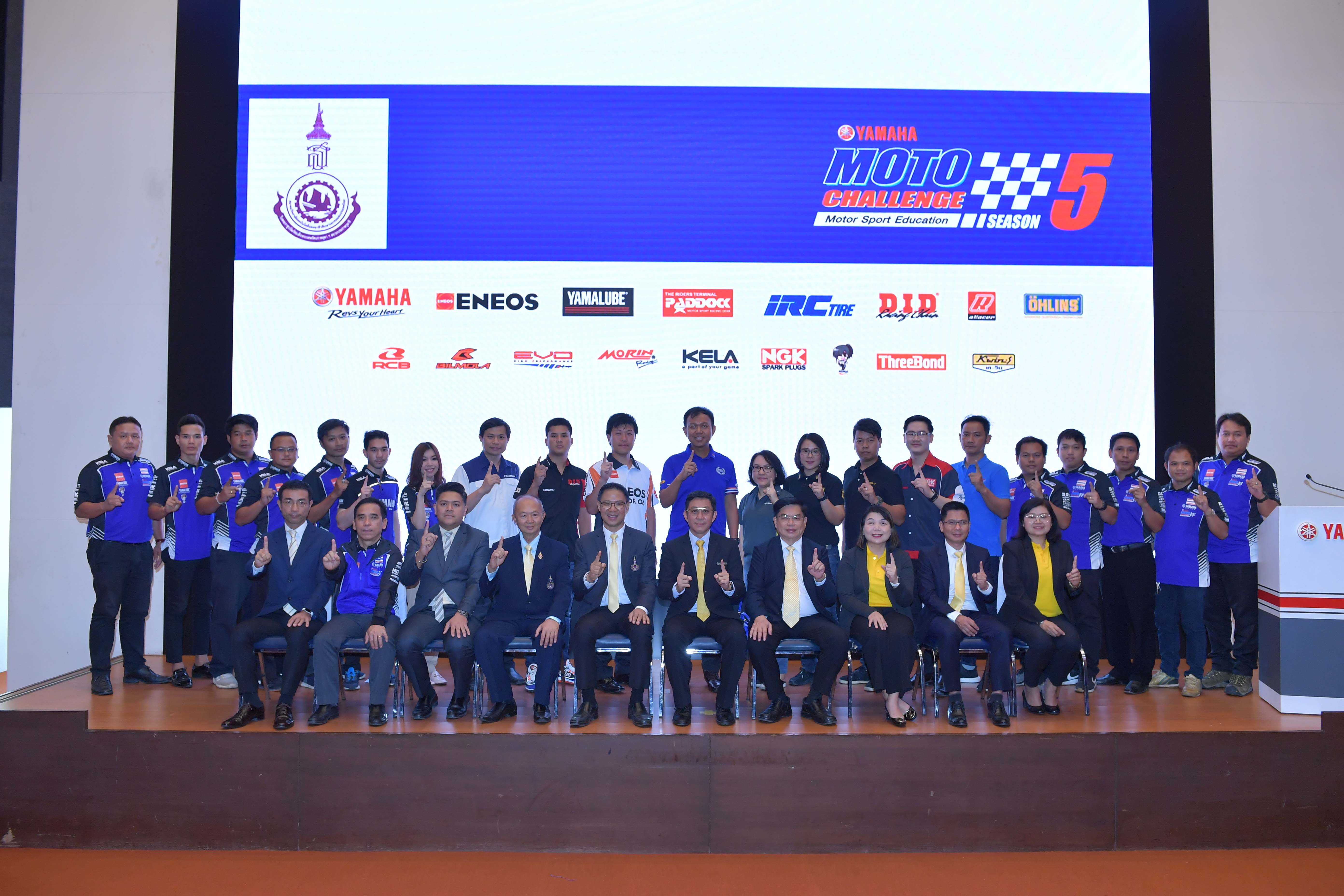นายธีระพงษ์ โอภาสกรกุล ผู้จัดการทั่วไปอาวุโสฝ่ายกีฬายานยนต์ และสถาบันฝึกอบรมขับขี่รถจักรยานยนต์ยามาฮ่า พร้อมด้วยผู้บริหารระดับสูง บริษัท ไทยยามาฮ่ามอเตอร์ จำกัด ถ่ายภาพร่วมกับ ดร.อดิศร สินประสงค์ นายกสมาคมวิทยาลัยเทคโนโลยีและอาชีวศึกษาเอกชนแห่งประเทศไทยในพระราชูปถัมภ์ สมเด็จพระเทพรัตนราชสุดาฯ สยามบรมราชกุมารี พร้อมด้วยผู้สนับสนุนการแข่งขัน และ 20 ทีมจากสถาบันอาชีวศึกษาที่เข้าร่วมโครงการ Yamaha Moto Challenge 2019 Season 5 ในงานแถลงข่าว Yamaha Moto Challenge 2019 Season 5    โดยยามาฮ่ามีความมุ่งมั่นในการพัฒนากีฬามอเตอร์สปอร์ตไทยให้ก้าวสู่การแข่งขันระดับโลก      ซึ่งจัดการแข่งขันภายใต้หลักสูตร Motorsport Education เพื่อผลิตบุคคลากรชั้นนำให้เข้าสู่วงการมอเตอร์สปอร์ตของประเทศไทย โดยใช้กฎ กติกา และมารยาทการแข่งขันรูปแบบเดียวกับการแข่งขันกีฬามอเตอร์สปอร์ตระดับอาชีพที่ได้รับรองจากสมาพันธ์กีฬาแข่งรถจักรยานยนต์แห่งประเทศไทย โดยพร้อมระเบิดความมันส์สนามแรกในรายการ R2M Thailand SuperBike วันที่ 7 – 9 มิถุนายน 2562 ณ สนามไทยแลนด์ เซอร์กิต นครชัยศรี