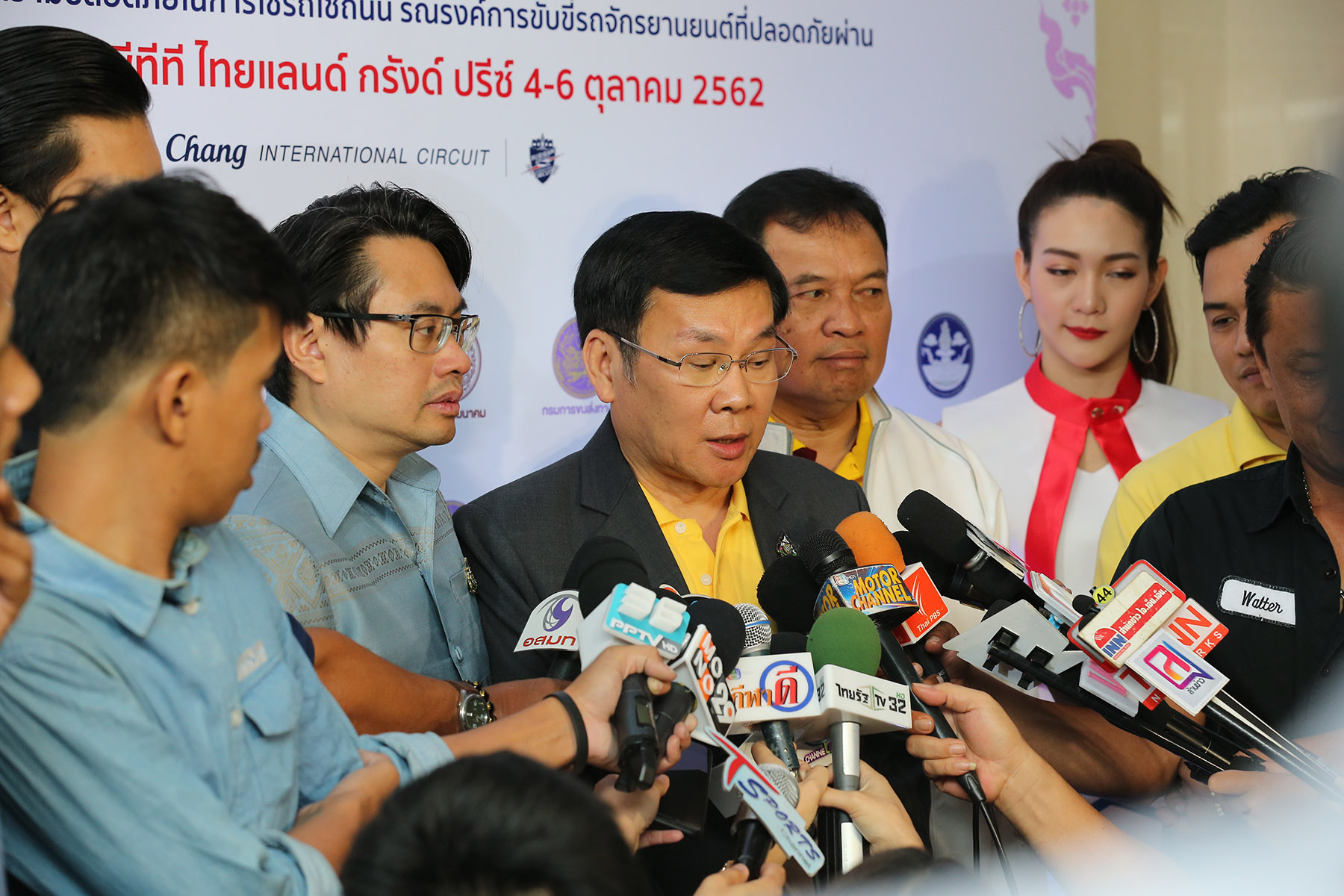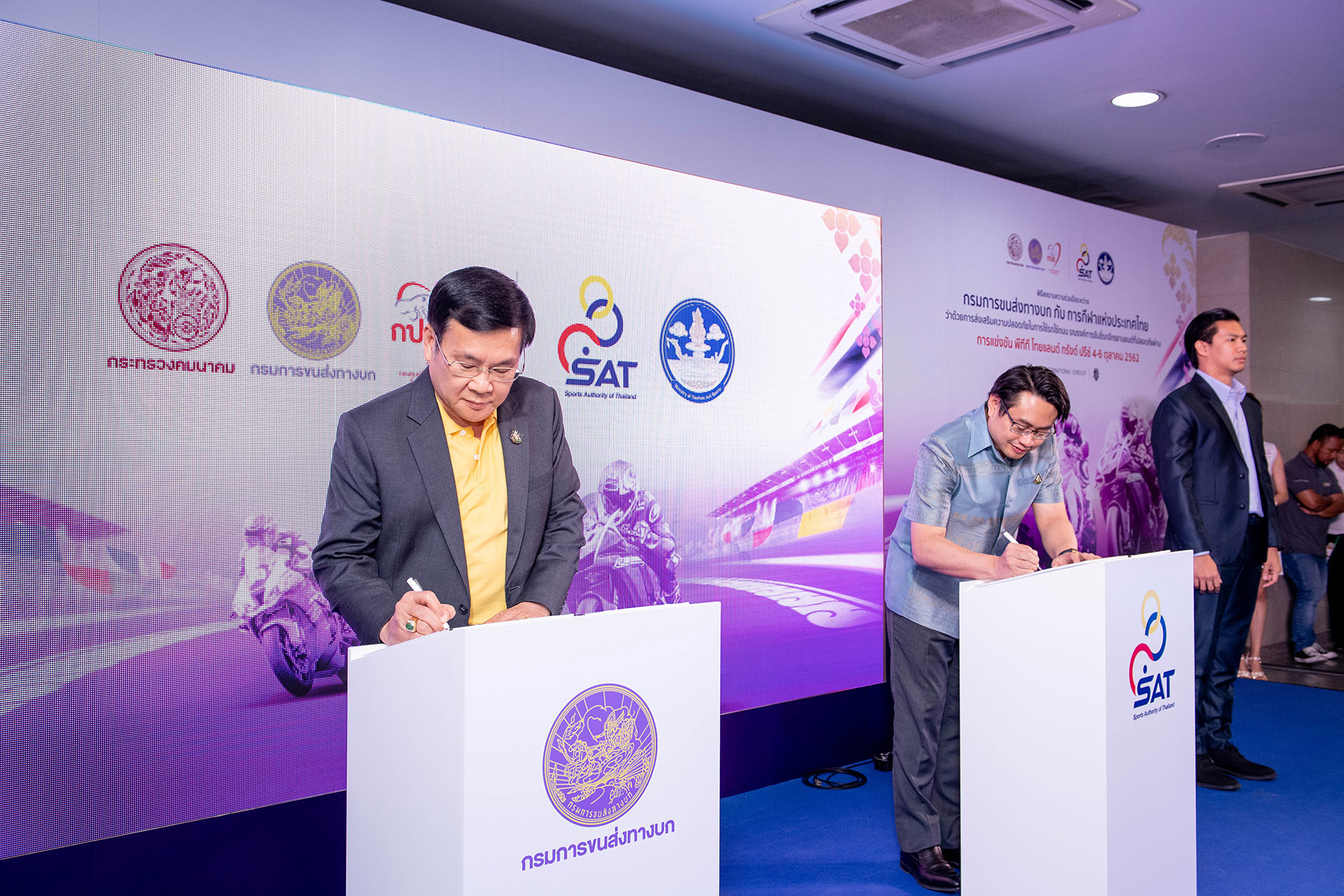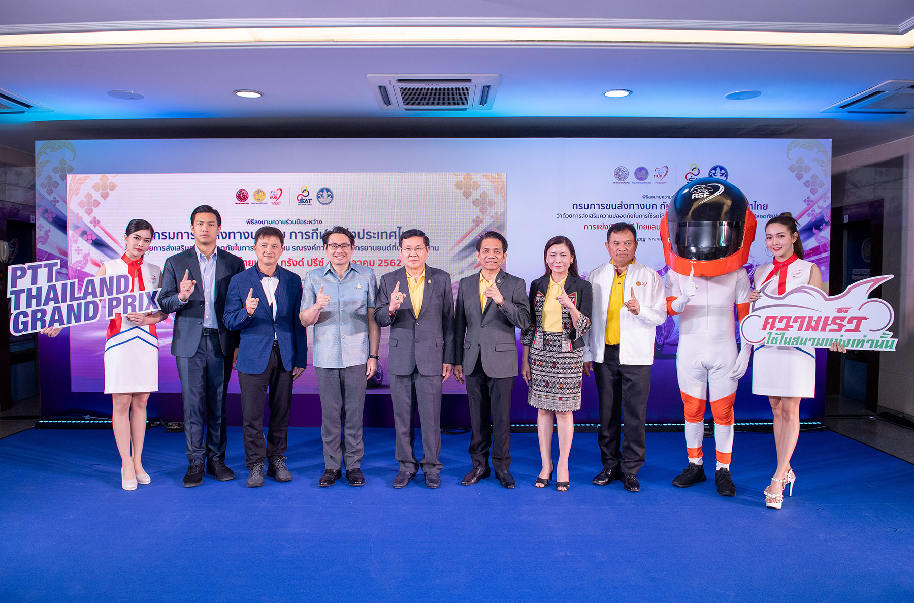 ล่าสุด เมื่อวันศุกร์ที่ 30 สิงหาคมที่ผ่านมา กรมการขนส่งทางบก ร่วมกับ การกีฬาแห่งประเทศไทย ได้จัดงานแถลงข่าวพิธีลงนาม ความร่วมมือและการสนับสนุน การแข่งขัน โมโตจีพี รายการ พีทีที ไทยแลนด์ กรังด์ปรีซ 2019 ขึ้นอย่างยิ่งใหญ่ เพื่อแสดงเจตนารมณ์ในการใช้ศึกจักรยานยนต์ทางเรียบชิงแชมป์โลก สะท้อนสู่นโยบายการขับขี่ปลอดภัยเพื่อรณรงค์ให้เป็นวาระสำคัญของประเทศไทย