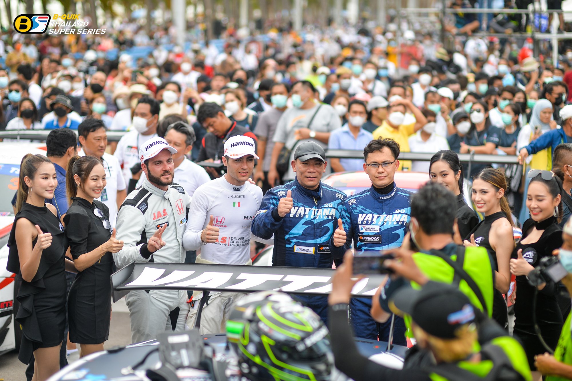 ปิดท้ายศึกเปิดสนามนัดแรกของฤดูกาลด้วยรุ่น Thailand Supercar GTM และ Thailand Supercar GT3 อันดุเดือดตลอด 60 นาทีเต็ม ซึ่งรุ่น Thailand Supercar GT3 มี หมายเลข 25 จาก B-Quik Absolute racing จาก 2 มือขับ คือ อาคัช แนนดี้ และแซนดี้ สตูวิค ครองตำแหน่ง โพล โพสิชั่น ก่อนที่จะโดนคว้าไปโดยฝีมือของ หมายเลข 11 จาก Vattana Motorsport ผลัดกันรุกรับทั้ง B-Quik Absolute racing และ Vattana Motorsport จนถึงช่วง Pit Window Open และ Closed ซึ่งเผยผู้นำตัวจริงเป็น หมายเลข 28 Vattana Motorsport โดย ชนม์สวัสดิ์ อัศวเหม และพิษณุ ศิริมงคลเกษม ที่จบสวยๆ ด้วยการคว้าแชมป์สนามแรกไปครอง ขณะที่รุ่น Thailand Supercar GTM หมายเลข 29 จาก Vattana PSC Motorsport ซึ่งประกบคู่ระหว่าง อากิฮิโร อาไซ และอนันต์ธร ตั้งเนียรนาทชัย นั้นโชว์ฟอร์มเดือดเป็นผู้นำในรุ่น และครองหัวแถวยาวจนกระทั่งเข้าเส้นชัย เก็บแชมป์สนามแรกไปครองเช่นกัน ส่วนสนามที่ 2 ของศึก “ยักษ์ชนยักษ์” รุ่น Thailand Supercar GT3 หมายเลข 11 จาก Vattana Motorsport จับคู่โดย อันดรีย กายาดีนิ และยาโคโป กุยเดดติ ทำผลงานได้อย่างไร้ที่ติ ด้วยการออกสตาร์ทจากโพล โพสิชั่น นำยาวรวดเดียวจบการแข่งขัน ด้านรุ่น Thailand Supercar GTM เรียกได้ว่า “เดือด” สุดๆ กับการช่วงชิงอันดับผู้นำ ซึ่งมี หมายเลข 29 จาก Vattana PSC Motorsport เป็นจ่าฝูง ซึ่งพลาดท่าอย่างน่าเสียดาย และทำให้ หมายเลข 15 Mongkol Motorsports จาก มั่นคง และธนาตย์ เสถียรถิระกุล กลายเป็นผู้คว้าแชมป์ไปครอง