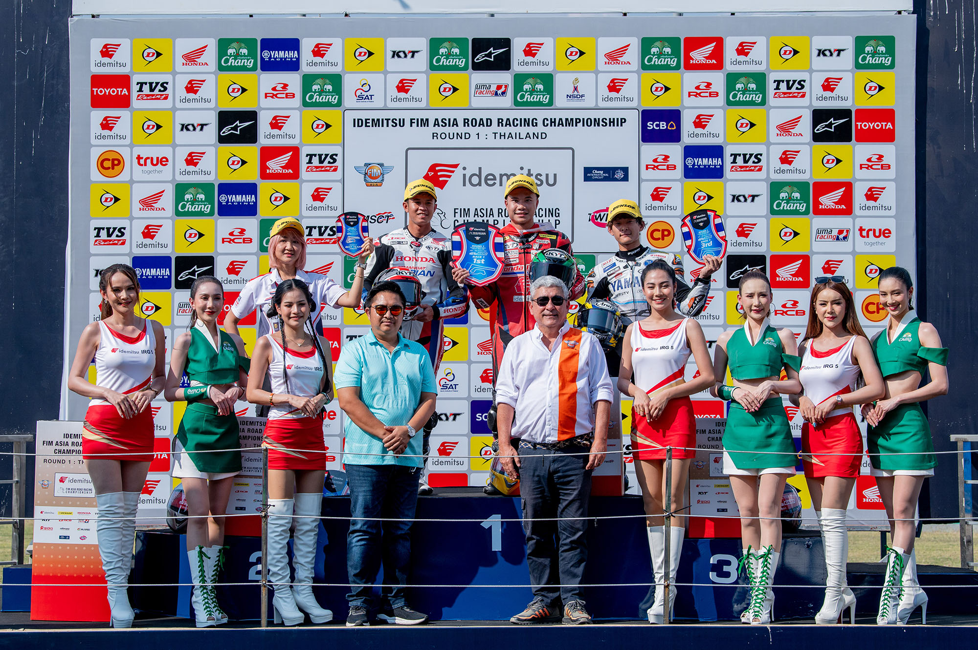ด้านผลในรุ่น เอเชีย โปรดักชั่น 250 ซีซี (AP250) ปรากฏว่า นักบิดอินโดนีเซียจาก แอสตร้า ฮอนด้า เรซซิ่ง ทีม อย่าง เรซ่า ดานิก้า อาห์เรน ยังคงอยู่ในฟอร์มร้อนแรงออกนำโด่งคว้าชัย 2 เรซติดต่อกัน ด้วยเวลา 18 นาที 38.595 วินาที ขณะที่ 2 นักบิดไทยอย่าง “ข้าวกล้อง” จักรีภัทร พฤฒิสาร ดาวรุ่งจาก ฮอนด้า เรซซิ่ง ไทยแลนด์ และทีมเมทรุ่นพี่ “มุกข์” มุกข์ลดา สารพืช ยอดนักบิดสาวต่อสู้อย่างดุเดือดก่อนบิดเข้าป้ายในอันดับ 2 และ 3 ตามหลังผู้ชนะ 8.832 วินาที และ 8.868 วินาที [caption id="attachment_46595" align="aligncenter" width="720"] 1TVS-No.1 Vorapong[/caption]