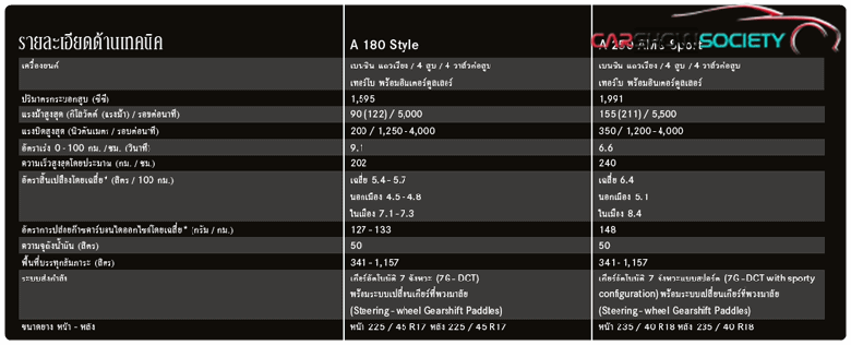 *อัตราสิ้นเปลืองเชื้อเพลิงสำหรับร‹น A 180 Style