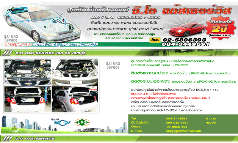 ก๊าซ lpg คืออะไร ก๊าซปิโตรเลียมเหลว (liquefied petroleum gas =lpg) เรารู้จักในนามของก๊าซหุงต้ม เป็นก๊าซไม่มีสี ไม่มีกลิ่น เบากว่าน้ำแต่หนักกว่าอากาศ เพื่อความปลอดภัยจึงมีการเติมสารจำพวก mercaptan เพื่อให้เกิดกลิ่นแจ้งเตือนเวลาเกิดการรั่ว ในบ้านเรามาจาก 2 แหล่งที่มา คือ การแยกน้ำมันดิบจากโรงกลั่นน้ำมัน และ บ่อก๊าซธรรมชาติ ประกอบด้วยส่วนผสมของไฮโดร คาร์บอน 2 ชนิด คือ โปรเปน (propane) บิวเทน(butane) ในอัตราส่วนเท่าไดก็ได้ ก๊าซแอลพีจีจะสามารถติดไฟได้ต้องมีอัตราส่วนระหว่าง 2-9 ส่วนต่ออากาศ 100 ส่วน น้อยกว่า 2% หรือ มากกว่า 9% ส่วนผสมดังกล่าวจะไม่ติดไฟ อุณหภูมิที่สามารถติดไฟเองได้อยู่ระหว่าง 410-580 องศาเซนเซียส มีค่าออกเทนอยู่ระหว่าง 95-105 และ แอลพีจีต้องการส่วนผสมของอากาศมากกว่าเบนซินเล็กน้อยในการเผาไหม้ระดับเดียวกัน มีสถานะเป็นของเหลวและก๊าซ และ นำมาใช้งานในรูปของไอสำหรับในรถยนต์ แอลพีจี 1 กิโลกรัมมีปริมาตร = 1.8 ลิตร ขณะที่เบนซิน 1 กิโลกรัมมีปริมาตร = 1.5 ลิตร คุณสมบัติในการเป็นเชื้อเพลิงของแอลพีจีทั้งค่าออกเทน ค่าพลังงานความร้อน และอัตราส่วนในการผสมของอากาศ แอลพีจีมีความใกล้เคียงเบนซินมากที่สุด มีสถานีบริการครอบคลุมทั่วไทย ถังแก๊สมีน้ำหนักเบา อุปกรณ์ส่วนควบคุมมีราคาถูก เลือกอุปกรณ์อย่างไรจึงจะไม่ได้ชื่อว่าเลือกผิด อุปกรณ์ส่วนที่ใช้ควบคุมระบบของแอลพีจีมีอยู่หลายส่วนด้วยกัน เริ่มจากถัง มีถังอยู่ 3 แบบด้วยกันที่นิยมใช้ในบ้านเรา 1. ถังแบบวาล์ว obd ลักษณะเป็นวาล์วมือหมุนสีทองหรือสีเขียว-แดง 2. ถังแบบวาล์ว ซุปเปอร์ ลักษณะเหมือนชนิดแรกแต่เพิ่มโซลีนอล์ยไฟฟ้าไว้ปิด เปิดแก๊ส 3. ถังแบบมัลติวาล์ว ถังรูปแบบนี้เป็นที่นิยมทั้งในบ้านเราและต่างประเทศ เราสามารถเลือกวาล์วที่จะใช้กับถังชนิดนี้คุณภาพดีแค่ไหนก็ได้ ยิ่งเลือกใช้วาล์วคุณภาพดีเท่าไรก็หมายถึงความปลอดภัยของผู้ใช้เช่นกัน มัลติวาล์วคุณภาพดีส่วนใหญ่มาจากอิตาลีเช่นยี่ห้อ brc-omb-omvl-tomasetto เป็นต้น ส่วนถังก๊าซแอลพีจี เป็นถังที่ผลิตภายในประเทศมี 5 ยี่ห้อคือ 1. เมททัลเมท 2. ชื่นศิริ 3. สยามอินเตอร์แม๊กเนท 4. สหมิตร 5. ยูเอ็มดี ทุกรายได้ มอก. ส่วนถังทรงโดนัทอยู่ในชนิดถังมัลติวาล์ว ส่วนใหญ่นำเข้าจากต่างประเทศมีราคาแพง และ ไม่ผ่าน มอก.ของไทยท่อนำแก๊ส ปัจจุบันกรมการขนส่งทางบกออกกฎกระทรวงบังคับให้ผู้ติดตั้งแก๊สแอลพีจีต้องใช้อุปกรณ์ส่วนควบคุมทุกชิ้นต้องมีมาตรฐานผลิตภัณฑ์อุตสาหกรรม(มอก.) หรือ มาตรฐานยูโร 2 ece.r67 ท่อนำแก๊สในปัจจุบันนิยมใช้ยี่ห้อ faro ซึ่งสามารถรับแรงดันได้ถึง 40 bar แต่แรงดันใน ระบบของแอลพีจีสูงสุดไม่เก