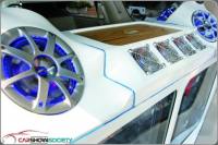 Isuzu MU-7 หรูมีระดับ เอสยูวีแห่งสีสันความบันเทิง ถึงจะไม่ใช่รถตลาดที่ขายดีมาก แต่ Isuzu Mu-7 จัดเป็นรถอเนกประสงค์ที่มีความหรูหรา โดดเด่นด้วยดีไซน์เฉพาะตัวที่ดูทันสมัย ซึ่งคันนี้ได้มีการปรับแต่งในบางส่วนทำให้ดูดีมากขึ้น พร้อมกับภายในให้ความกว้างขวางสะดวกสบาย และที่สำคัญได้เติมเต็มความบันเทิงแบบครบเครื่อง จึงเหมาะสำหรับเป็นรถครอบครัว ![]() รูปโฉมมีระดับสลับแสงสี จากรูปโฉมโดยรวมของ MU-7 ที่มาในแบบสีขาวมุก เด่นด้วยล้อแม็กไซส์โตโครเมียมวาววับ และประดับตกแต่งด้วยบันไดข้างอลูมิเนียม ติดกันสาดไว้ทั้งสี่บาน แถมแผ่นป้ายทะเบียนแบบยาว พร้อมกับแร็คหลังคาที่มาสไตล์ลุย..ลุย เพื่อไว้ขนของสัมภาระได้มากขึ้น และในส่วนของเครื่องเสียง ถ้าให้คาดเดาคันนี้อย่างน้อยเปิดมาต้องมีตู้ซับติดตั้งอยู่เต็มพื้นที่ครึ่งหลังแน่...จนนั่งไม่ได้ชัวร์ แต่พอเข้าไปดูแล้วกลับไม่กินพื้นที่ในส่วนของเบาะนั่งทั้ง 7 ที่แม้แต่น้อย ที่สำคัญภายในยังมีลูกเล่นด้วยแสงสีเทียบกับผับเคลื่อนที่ ไม่ว่าจะเป็นคอนโซลหน้า กับแผงประตู รวมถึงเพดานหลังคาก็ไม่เว้น โดยอาศัยแสงสีทั้งจากไฟแฟลช ไฟเรืองแสง รวมถึงกล่องเลเซอร์โปรเจ็กเตอร์ที่ปรับเปลี่ยนรูปแบบของแสงให้สาดขึ้นบนเพดานหลังคา ทำให้เห็นแสงระยิบระยับไปทั่วทั้งคันดูแล้วตื่นตาไม่น้อยทีเดียว ส่วนพลังเสียงระดับสำหรับคันนี้ ต้องเรียกว่าเป็นรถครอบครัวบันเทิงขนานแท้ ซึ่งเคล็ดลับอยู่ที่การจัดวางอุปกรณ์ต่าง ๆ ให้อยู่ในตำแหน่งที่ว่าง ซึ่งไม่มีผลต่อความกว้างขวางและความสะดวกสบายของห้องโดยสาร เช่น ใต้คอนโซลหน้า ใต้เบาะที่นั่งแถวสาม ที่ถูกจับเอาทั้งชุดภาคขยายต่าง ๆ กับชุดควบคุม รวมถึงตัวปรับแต่งเสียงไว้ให้แนบเนียนมากที่สุด ![]() เพิ่มแอมป์ Sedona กับลำโพง Kicker ในการติดตั้งชุดเครื่องเสียงเข้าไปใน Isuzu MU-7 นั้นยังคงพอใจกับ Kenwood แบบ 2 Din หน้าจอสัมผัสแบบ Full Function พร้อมเชื่อมต่อกับกล้องหลังมาให้ด้วยของดีแบบนี้จะเปลี่ยนให้เสียของทำไม เพียงแค่พ่วงกับ LCD ไซส์ใหญ่ขนาด 15 นิ้ว อีกเครื่องสำหรับผู้โดยสารนั่งหลังและเพิ่มภาคขยายชุดใหญ่เข้าไปก็เวิร์คแล้ว ซึ่งทางร้านเลือกใช้แบรนด์ Sedona เริ่มตั้งแต่ปรีแอมป์รุ่น PEQ-550 เป็นตัวขยายสัญญาณก่อนส่งหน้าที่ในการแยกความถี่เสียงให้กับ Crossover จาก Kicker รุ่น KX3 ที่มีคุณภาพไว้วางใจได้ จากนั้นถึงเชื่อมต่อเข้ากับพาวเวอร์แอมป์ของ Sedona รุ่น SB-485 แบบ 4 ชาแนลทั้ง 3 ตัว ซึ่ง 2 ตัวแรกจะใช้ขับลำโพงกลางแหลมขนาด 6 นิ้วที่ติดไว้ประตูหน้า 2 คู่ และด้านหลังอีก 1 คู่ตรงประตูและบนคอนโซลแบบ Build-in อีก 1 คู่ เพื่อกระจายพลังเสี