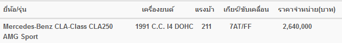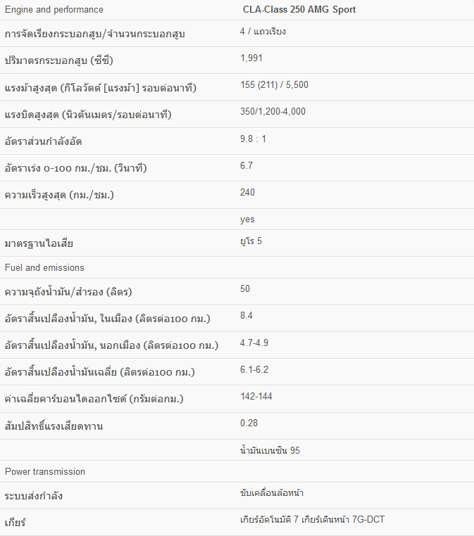 Mercedes-Benz CLA รุ่นใหม่ แสดงให้เห็นถึงเอกลักษณ์เฉพาะและการตีความที่ท้าทายในการออกแบบของ เมอร์เซเดส-เบนซ์ ในยุคแรกเริ่ม Coupé 4 ประตูคือคำบรรยายที่ชัดเจนของ Avantgarde โดยมีความเป็นสปอร์ตในเซ็กเมนต์พิเศษเฉพาะนี้ ตารางราคา Mercedes-Benz CLA-Class (เมอร์เซเดส-เบนซ์ ซีแอลเอ-คลาส) 2014 ![]() กระจังหน้าเดี่ยวตัวล่างและกระจังหน้าเสริมลาย Diamond ที่ทำให้ท่านเร้าใจตั้งแต่เริ่มออกตัว เส้นแนวหลังคาที่เป็นเอกลักษณ์เฉพาะของ Coupé และเส้นแนวใต้กระจกที่อยู่ในระดับสูง พร้อมทั้งการเน้นแนวคลื่นด้านข้างทั้งสอง ส่งผลให้ได้ภาพลักษณ์ที่ดูปราดเปรียวเพรียวลม และด้วยการปรับแต่งอื่นๆ จึงทำให้คุณสมบัติต้านทานอากาศ และรูปทรงที่สมบูรณ์แบบของ CLA รุ่นใหม่มีความโดดเด่นเหนือรถยนต์ในรุ่นเดียวกัน ![]() จากลักษณะภายนอกรถที่ดูเป็นสปอร์ตจึงมีการนำไปใช้กับภายในรถโดยใช้เส้นสายแนวนอนที่ช่วย ดึงดูดสายตา องค์ประกอบที่สำคัญด้านการออกแบบอย่างต่อเนื่อง เช่น เส้นสายด้านข้างที่พลิ้วไหว บนแผงประตูสร้างจุดเชื่อมต่อระหว่างภายนอกและภายในรถได้อย่างกลมกลืนการคัดสรรใช้วัสดุคุณภาพสูงด้วยความพิถีพิถันและฝีมือที่ประณีตทำให้มั่นใจได้ว่ายนตรกรรมคันนี้ตรงตามคำจำกัดความ ของ Coupé ที่เฉียบคมได้โดยแท้จริง ![]() ภายนอก ทันทีที่ CLA รุ่นใหม่เปิดตัวไปไม่นาน ก็ได้สร้างความสนใจได้เป็นอย่างมาก ซึ่งจากการออกแบบ ด้วยแนวคิดสร้างสรรค์ใหม่ จึงให้มิติที่แสดงออกถึงรูปทรงสไตล์ Coupé ที่ดูพลิ้วไหว ด้านข้างที่เฉียบคม และส่วนท้ายที่ลาดต่ำลงเต็มเปี่ยมด้วยพละกำลัง ไม่ใช่ทุกคนที่จะมองเห็นถึง รายละเอียดของ Avantgarde แต่สำหรับคนที่มองเห็นจะประทับใจกับการตกแต่งอย่างละเอียดประณีตที่ไม่เหมือนใครซึ่งเป็น เอกลักษณ์อันโดดเด่นที่รังสรรค์โดยเมอร์เซเดส-เบนซ์ ทำให้เกิดความแตกต่างจากมาตรฐานระดับกลาง ความแปลกใหม่และความตื่นเต้นเร้าใจที่ดึงดูด สายตาด้วยความท้าทาย ตั้งแต่ครั้งแรกที่เห็น ![]() ภายใน ปฏิเสธที่จะยอมจำนนต่อความเป็นเลิศคือคุณสมบัติของ CLA ใหม่ที่เกิดขึ้น และสะท้อนให้เห็น จากภายในที่มีความโดดเด่นไม่เหมือนใคร ช่องลมแบบไดนามิคได้รับแรงบันดาลใจจากรูปทรงของเครื่องยนต์ไอพ่น ในขณะที่แผงคอนโซล ประกอบด้วย แผงหน้าปัดคู่แลดูโดดเด่นและให้ความรู้สึกถึงความเป็นยนตรกรรมสปอร์ตด้วย ปุ่มควบคุมสีเงินและเข็มเกจวัดสีแดงเรียงตัวกัน จอแสดงผลอิสระขนาดใหญ่ที่ดึงดูดสายตา แห่งความชื่นชม อีกทั้งพวงมาลัยที่มีรูปแบบ 3 ก้านแหวกแนวและปุ่มควบคุมฟังก์ชัน 12 ปุ่ม ซึ่งจะช่วยให้ท่านสามารถควบคุมการทำงานต่างๆ ได้เต็มประส