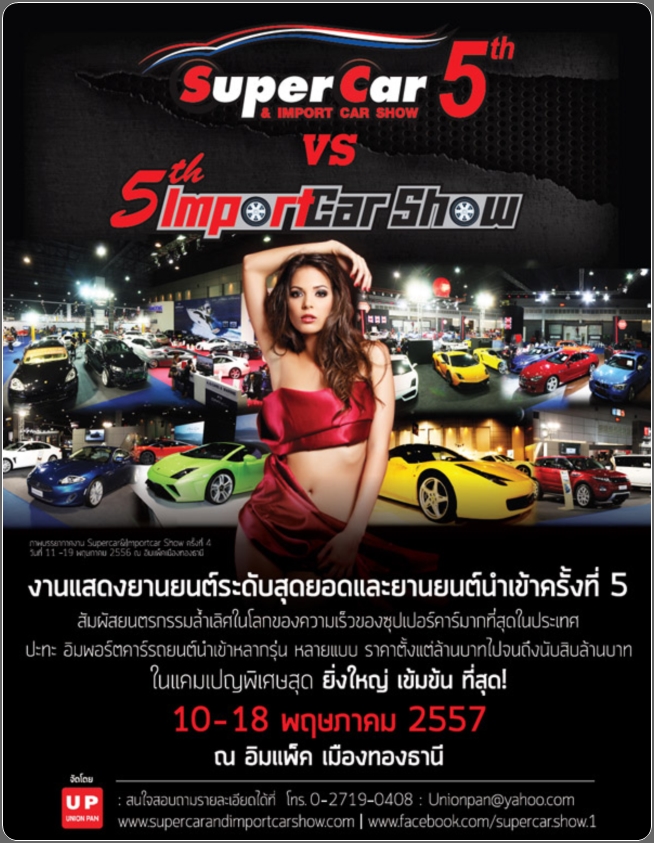 บริษัท ยูเนี่ยนแพน เอ็กซิบิชั่นส์ เผยว่างาน "ซูเปอร์คาร์ แอนด์ อิมพอร์ต คาร์ โชว์ ครั้งที่ 5" เป็นงานแสดงรถยนต์หรูนำเข้าระดับพรีเมี่ยม จัดขึ้นเพื่อกระตุ้นอุตสาหกรรมภาครถยนต์ระดับพรีเมี่ยม และเป็นการผลักดันให้ประเทศไทยเป็นที่รู้จักในฐานะสถานที่จัดงานแสดงรถซูเปอร์คาร์ระดับโลก ภายในงานดังกล่าวได้แบ่งพื้นที่จัดงานออกเป็น 2 โซนหลัก ประกอบด้วย 1. โซนซูเปอร์คาร์ แอนด์ อิมพอร์ตคาร์ ได้รับความร่วมมือกับผู้ประกอบการนำเข้ารถหรูแบรนด์ดังระดับโลกนำรุ่นซูเปอร์คาร์รุ่นใหม่ ๆ ล่าสุดที่เพิ่งเปิดตัวมาร่วมโชว์ให้กับผู้ที่ชื่นชอบความเร็วได้สัมผัสกันอย่างใกล้ชิด มากกว่า 150 คัน จาก 15 ผู้นำเข้า มีราคาขายเริ่มต้นที่ 2-40 ล้านบาท อาทิเฟอร์รารี่, ลัมโบกินี, โลตัส, จากัวร์, โฟล์คสวาเก้น , เรนจ์โรเวอร์, มิตซูโอกะ และซันยอง เป็นต้น 2. โซนอุปกรณ์ตกแต่งรถยนต์ เป็นมุมที่มีผู้ประกอบการนำเข้าอุปกรณ์ประดับยนต์จำนวนมากนำสินค้ารุ่นใหม่ ๆ เข้ามาให้บริการเลือกช้อปภายในงานแบบครบวงจร และภายในโซนนี้ยังได้มี การเปิดตัวชุดล้อแม็กซ์สำหรับรถยนต์ชั้นนำระดับโลก ราคาแพงที่สุดในโลก มูลค่า 1.5 ล้าน ผลิตและนำเข้าจากประเทศอเมริกา รุ่น HRE Carbon Wheels และเปิดตัวท่อไอเสีย ยี่ห้อ Akrapovic ราคาเริ่มต้น 100,000 – 500,000 บาท ที่มาเปิดตัวภายในงานนี้ด้วยเช่นกัน ![]() สำหรับไฮไลต์ในการจัดงานนอกจะได้สัมผัสรถซูเปอร์คาร์รุ่นใหม่ ๆ ผู้จัดงานได้ร่วมกับ "อีโว แมกกาซีน" จัดกิจกรรมร่วมกับคลับซูเปอร์คาร์กว่า 10 คลับชั้นนำของประเทศ เปิดพื้นที่ให้กับผู้เข้าร่วมงานได้ร่วมสนุกและแลกเปลี่ยนข้อมูลระหว่างกัน เพื่อสร้างสีสันในงานให้มีความน่าตื่นตาตื่นใจมากขึ้น ภายในงานยังมีการจัดโซนรถหายาก คือ "Classic GT and Exotics" เป็นโซนเปิดคลังสมบัติรถยนต์ซูเปอร์คาร์รุ่นเก่าหายาก และบางคันมีรุ่นเดียวในประเทศไทย มาให้ผู้ที่รักรถยนต์รุ่นคลาสสิคจนถึงรุ่นหายากได้สัมผัสของจริงอย่างใกล้ชิด อาทิ Merceds Benz 300 SL , Lamborghini Countach 25th Anniversary , Ferrari 365 GTB/4 daytona, Porsche Carrera GT , Lexus LFA เป็นต้น ![]() นอกจากนี้ในแต่ละวันยังมีคลับรถต่าง ๆ ได้แก่ Porsche Club Thailand, Cavallino Ferrari Club Thailand , Maserati Club, New Mini Society, BMW Society, Lamborghini Club Thailand, Mercedes Benz Club Thailand, เข้ามาเยี่ยมชมงานและมาสร้างสีสัน โดยค่ดว่าจะมีผู้เข้าชมงานกว่า 100,000 คน ตลอดระยะเวลา 9 วัน มียอดจองรถยนต์ภายในงานกระฉูดกว่า 1,000 ล้านบาท ![]() ![]() ![]() ![]() |