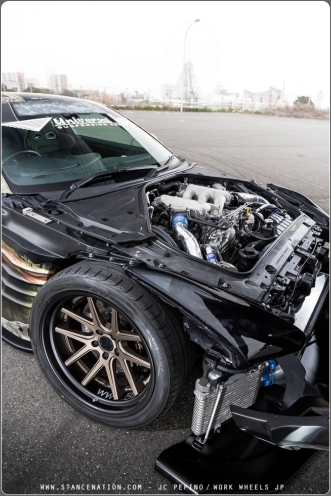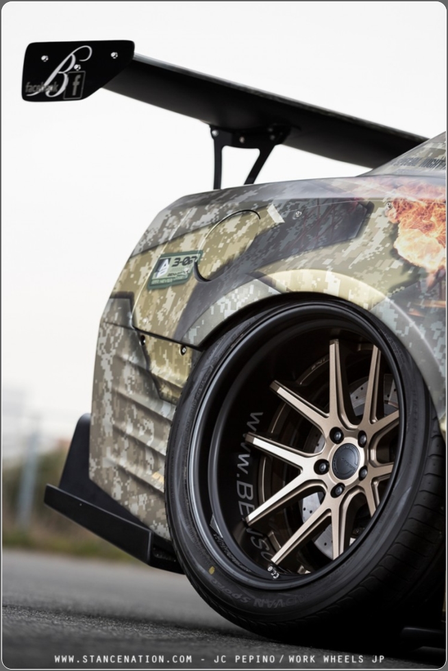 ![]() เปิดตัวครั้งแรกของพวกเขาลำตัวกว้าง GT-R ที่โตเกียวออโตซาลอนในปี 2012 เบน Sopraเริ่มแนวโน้มของชุดกว้างขึ้นทั่วโลกและไม่เคยมองกลับ ถาโถมข้างหน้าอย่างรวดเร็วเพียงแค่ปีเดียวและ Ueta-san เข้าสู่โลกของดริฟท์โดยการป้อนหนึ่งในรถยนต์ของเขาในการสาธิต 2013 เหตุการณ์ เป็นรถคันแรกและที่เดียวกับการระงับอากาศประสิทธิภาพเช่นเดียวกับการเป็นครั้งแรกของสิ่งที่นำมาใช้ร่วมกันของความสงสัยและความไม่แน่นอน แต่คนขับรถและ Uetaกำลังมั่นใจหลังจากพบความสามารถของรถในการจัดการและไปแนวเลื่อน . นอกจากนี้อากาศหยุดชะงักได้รับอนุญาตให้เป็นคนแรก คนแรกที่โหลดลงในรถพ่วงที่เป็น! ![]() ด้วยความช่วยเหลือของชุดสากลระงับอากาศที่สมบูรณ์, ซิลล่านี้ตั้งอยู่สวยพร้อมด้วยล้อขนาดใหญ่ที่ทำงาน ( Work Gnosis CV203 ) นั่งใต้กันชนเบน Sopra มาในที่ใหญ่ 20 × 10.5 มม. 5 และ 20 × 11.5-37mm, Uetaไปกับบรรทัดฐานท่าทางและเลือกที่จะไม่ยืด 285/315 ยางโยโกฮาความกว้างของเขา (blasphemy! ... เพียงแค่ล้อเล่น) และทำงานกับผนังตรง diffuser หลังติดสูงช่วยให้ออกอย่างรวดเร็วของการลากทำให้อากาศจากใต้ ด้านบนมันทั้งหมดออกจากตัวอักษรเป็นปีก GT ติดตั้งด้านหลังที่ทำให้เส้นขอบฟ้าของตัวเองมากไปด้านหลังและให้ downforceรถของคำสั่งนี้สามารถ ![]() แม้ว่าโครงการที่รถคันนี้เริ่มต้นในเดือนตุลาคมปี 2013 ทุกอย่างมารวมกันภายในระยะเวลา 3 เดือนนับไม่ถ้วนของการแสดง เปิดตัวครั้งแรกในเดือนมกราคมสำหรับโตเกียวอัตโนมัติร้านทำและการที่ได้รับรางวัลสูงสุดเบน Sopraตซิลล่าก็เดินไปที่โอซาก้าแสดงอัตโนมัติ Messeและนาโกย่าออโต้แนวโน้มในเดือนกุมภาพันธ์และมีนาคมตามลำดับ เคลื่อนย้ายไปยังรายละเอียดภายนอกของรถ Uetaเรียกศิลปะโรงงานที่จะจัดการกับเครื่องสำอางรายละเอียดที่ชัดเจนประดับประดาทุกโค้งและมุมเดียวของชุดเต็มของเขา ผสมเข้าด้วยกันกะโหลกเปลวไฟพรางดิจิตอลและแบบดั้งเดิมเกี่ยวกับเรื่องนี้ GT-R, ศิลปะการออกแบบโรงงานเป็นที่ระลึกอย่างพิถีพิถันเห็่ชิ้นงานศิลปะที่หลายจักรยานสับที่กำหนดเองหรือผู้ขับขี่ต่ำกีฬา ![]() ยิงภายในถอดหัวใจของสัตว์ร้ายนี้แสดงให้เห็นถึงสิ่งที่ผลิต 600hp ใจกว้างหลังใหญ่ 315 ยางความกว้างที่กำลังล้มตัวลงนอน แม้ว่าจะขาดมอนสเตอร์ปรับแต่งมันเป็นเรื่องยากมากที่จะผิดหวัง ได้อย่างง่ายดายการรักษาความกังวลเกี่ยวกับการปรับแต่งกล่าวด้าน AWD เกียรติคู่กับ 600 ม้าแน่นอนช่วยให้รถคันนี้ที่จะได้รับงานทำกรีดร้องและไอเสีย badasseryทั้งหมดรวม ![]() นั่งอยู่หน้า GReddyหน้าอินเตอร์ม้าเป็นพิเศษเบน Sopraพ่วงอ่อนเบ็ด! พิมพ์พองสีเขียวพอที่จะหาสถานที่บนรถและเหมาะสมเพื่อให