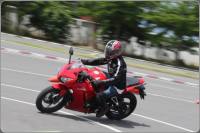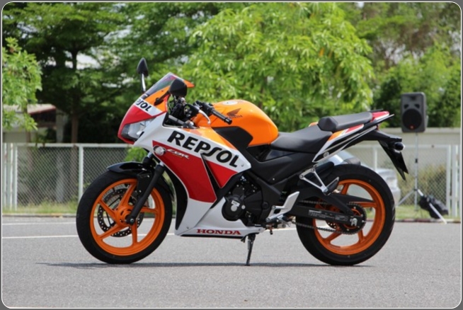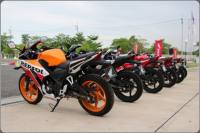 Honda CBR300Rรถจักรยานยนต์รูปทรงสปอร์ต ตัวใหม่ล่าสุดจากค่ายปีกนก AP Honda ได้ถูกเปิดตัวไปเมื่องาน Bangkok International Motor Show 2014 ช่วงเดือน เม.ย. ที่ผ่านมา และเมื่อประมาณ 2 สัปดาห์ก่อน ก็ได้ถือกำหนดเปิดราคา มาเสียที กับตัวเลข 1.33 แสนบาท และ 1.36 แสนบาท สำหรับลายพิเศษ Repsol และเมื่อ 5 มิย. 2014 ทาง AP Honda ได้จัดกิจกรรม Test Ride ให้สื่อมวลชน หลากหลายแขนง ร่วมทดสอบ สมรรถนะการขับขี่ของ Honda CBR300R ใหม่ ในศูนย์ฝึกขับขี่ปลอดภัย Honda สุขาภิบาล 3 ![]() ซึ่งอาจเป็นที่น่าเสียดายเล็กน้อย ที่เราได้สัมผัสกับเจ้า 300R ใหม่ นี้เป็นเวลาเพียงแค่ 10 นาที เท่านั้น โดยการขับขี่บน Track ในสนามขับขี่ปลอดภัย ซึ่งเราหวังว่าในโอกาสครั้งหน้า น่าจะมีโอกาสได้ลองในรูปแบบขับขี่ออกทริป ซึ่งจะเป็นการลองในรูปแบบการใช้งาน จากกลุ่มผู้ซื้อจริง นั่นคือการขับขี่ท่องเที่ยวกันในวันหยุด นั่นเอง สไตล์รูปลักษณ์ของ Honda CBR300R นั้นได้แรงบรรดาลใจจากการถ่ายทอดรูปแบบไฟหน้าคู่ มาจาก Honda CBR1000RR ซึ่งถือเป็นรุ่น Super Sport สูงสุดในตระกูล CBR แต่ เมื่อมองทางด้านท้าย เราแทบไม่รู้สึกถึงความแตกต่างระหว่างตัว 150, 250 และ 300 ใหม่นี้เสียเท่าไร เพราะมาในสไตล์เดียวกันเป๊ะ! สำหรับท่อไอเสียที่เป็นทรงเหลี่ยมใน 250R ได้ปรับมาใช้แบบทรงกลมเช่นเดียวกับรุ่น 500R แต่เมื่อมองทางด้านข้าง ความสูงเบาะ 785 มม. เท่านั้น ทำให้ผู้ที่ส่วนสูงไม่มากนักยังสามารถเหยียบได้อย่างเต็มพื้นรองเท้า สำหรับล้อเป็นล้ออัลลอยลาย 5 ก้าน หุ้มยางสเป็กกว้างเท่าเดิมทั้งหน้าหลัง หน้า 110 หลัง 140 ![]() ในด้านของรูปลักษณ์แล้วหากเทียบกับรุ่น 250R จะพบว่าถังน้ำมันนั้นจะสูงขึ้น และท้ายจะสูงขึ้น ซึ่งให้รูปลักษณ์สปอร์ตเพิ่มมากขึ้น แม้ไฟท้าย จะไม่แตกต่างกันนัก ก้านกระจกดูสั้นลงกว่าเดิม ชิลด์บังลมเป็นรูปทรงแบบใหม่เช่นเดียวกับ CBR500R รวมถึงแฟริ่งข้างแบบใหม่ ทางประกับไฟด้านซ้าย ได้มีไฟPass มาให้ต๊อบไฟสูง ทางด้านขวามีเพียงสวิทช์สตาร์ท และปุ่ม Off-Run ที่แผงหน้าปัดได้ถูกหยิบยกมาจากตัว 250R ซึ่งจะบอกเพียง Odometer และ เซ็ตทริป โดยในคันนี้ไม่สามารถเลือกปิดระบบ ABS ได้ ![]() Honda CBR300R มากับ 3 สี ได้แก่ แดง, ดำ, ขาว Tri-Color และอีก 1 ลายพิเศษ Repsol เพื่อเป็นการเฉลิมฉลองแชมป์โลก Moto GP 2013 ของ Marc Marquez ทีม Repsol Honda โดยในรุ่นนี้จะใช้ล้อเป็นสีส้ม ด้านเครื่องยนต์ ในรุ่น 300R คันนี้ หลักๆ ที่แตกต่างนอกจากเรื่องของความจุที่เพิ่มจาก การเพิ่มระยะชักจาก 55->63 มม. ทำให้ขยายความจุเพิ่มจาก 249 -> 286cc ก็อาจจะมีอีกส่วน ในเรื่องของการไม่มี O2 Censor อย่างเช่นใน CBR250R สามารถส่งถ่ายกำลังได้ 22.8kW (31hp)@8,500rpm และแรงบิด 26.2Nm@7,000rpm ผ่านเกียร์ 6 speed คลัชมือ ทันทีที่กำคลัชลองเบิล พร้อมออกตัว พบว่า การเปลี่ยนสปริงคลัช