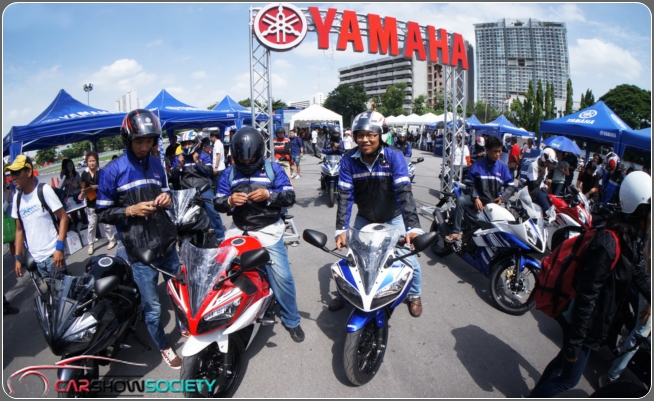 มร.เท็ตสึยะ อินะมูระ ประธานกรรมการบริหาร (คนกลาง) พร้อมผู้บริหารระดับสูง บริษัท ไทยยามาฮ่ามอเตอร์ จำกัด จัดกิจกรรม “กำเนิดสายพันธุ์สปอร์ต ยามาฮ่า อาร์ 15 ครั้งแรกในเมืองไทย” เพื่อส่งมอบ ยามาฮ่า วายแซดเอฟ - อาร์ 15 ให้กับลูกค้ากลุ่มแรก ได้เป็นเจ้าของก่อนใคร และจัดสนามทดสอบขับขี่เอาใจลูกค้าทั่วไปที่รักความสปอร์ต ให้ได้สัมผัสความเร้าใจของ “ยามาฮ่า อาร์ 15” เป็นครั้งแรก หลังจากเปิดตัวอย่างเป็นทางการในงาน มอเตอร์โชว์ ครั้งที่ 35 ที่ผ่านมา ทำการส่งมอบ ยามาฮ่า อาร์ 15 เป็นจำนวนมากกว่าร้อยคันภายในวันเดียว ก่อนจะทำการจำหน่ายพร้อมกันทั่วประเทศในต้นกรกฎาคมนี้ ณ สนามมอเตอร์สปอร์ต ลนด์(แดนเนรมิต) เมื่อเร็วๆ นี้ |